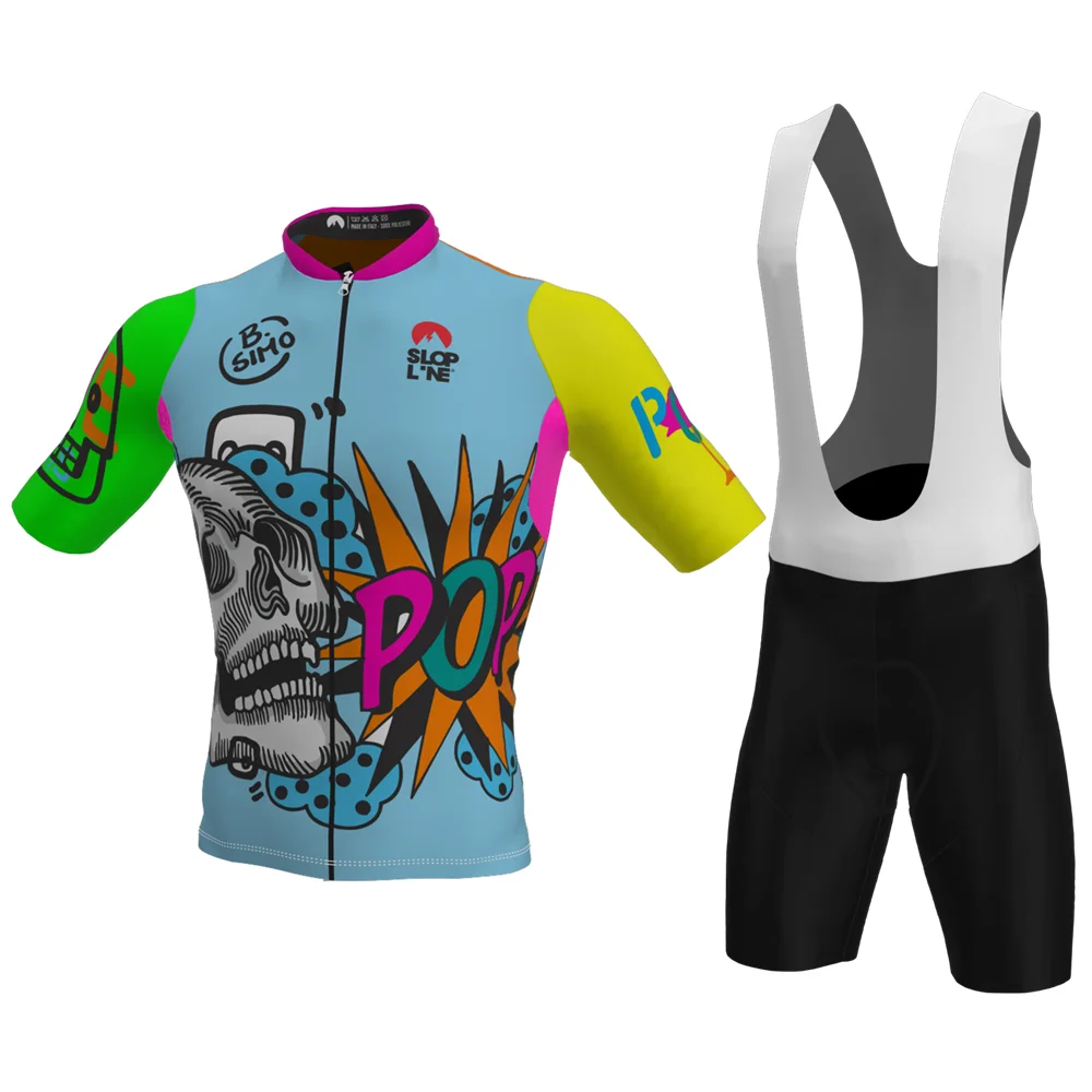 Набор велосипедных Джерси Slopline с коротким рукавом, летняя велосипедная одежда для шоссейных велосипедов, гелевые шорты 9D с нагрудником для езды на велосипеде на большие расстояния
