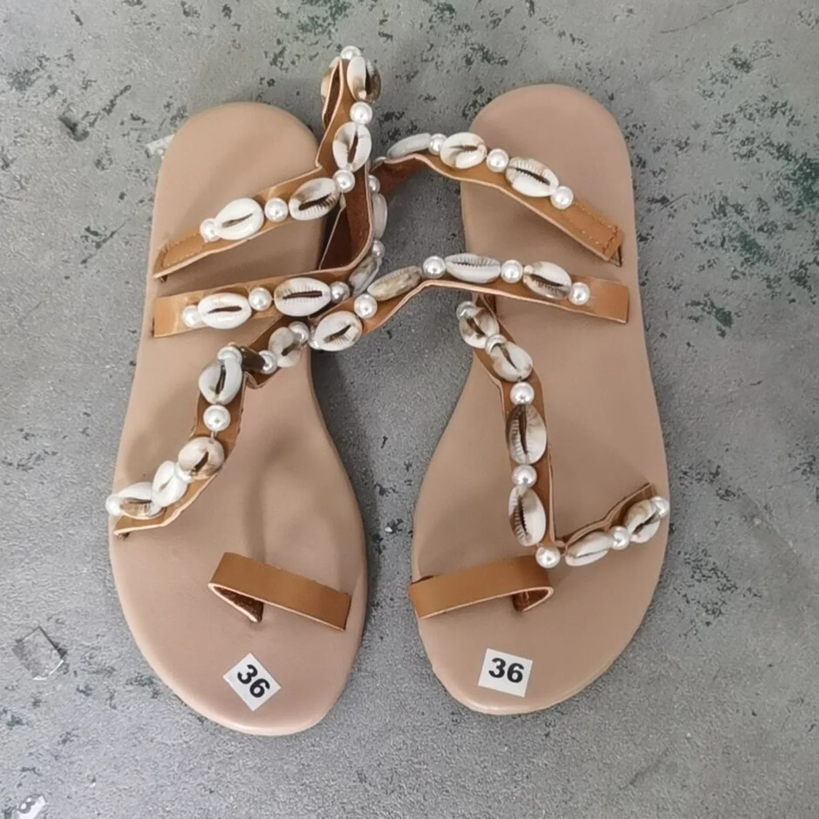 Сандалии SAGACE Женские повседневные, плоские шлепанцы с ракушками и жемчугом, летняя обувь, повседневные туфли на плоской подошве