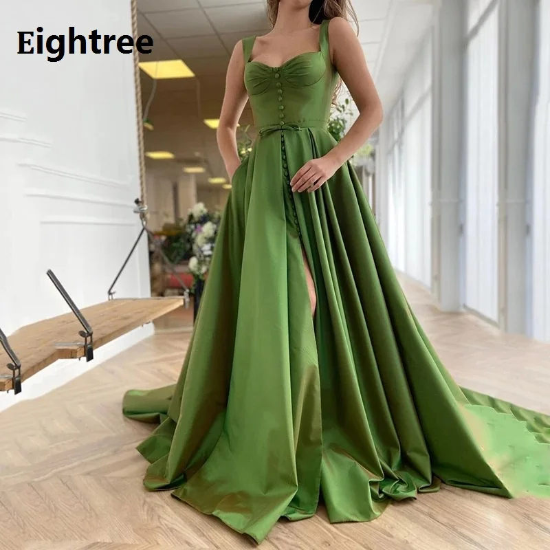 Простое зеленое атласное платье-трапеция для выпускного вечера, эле...