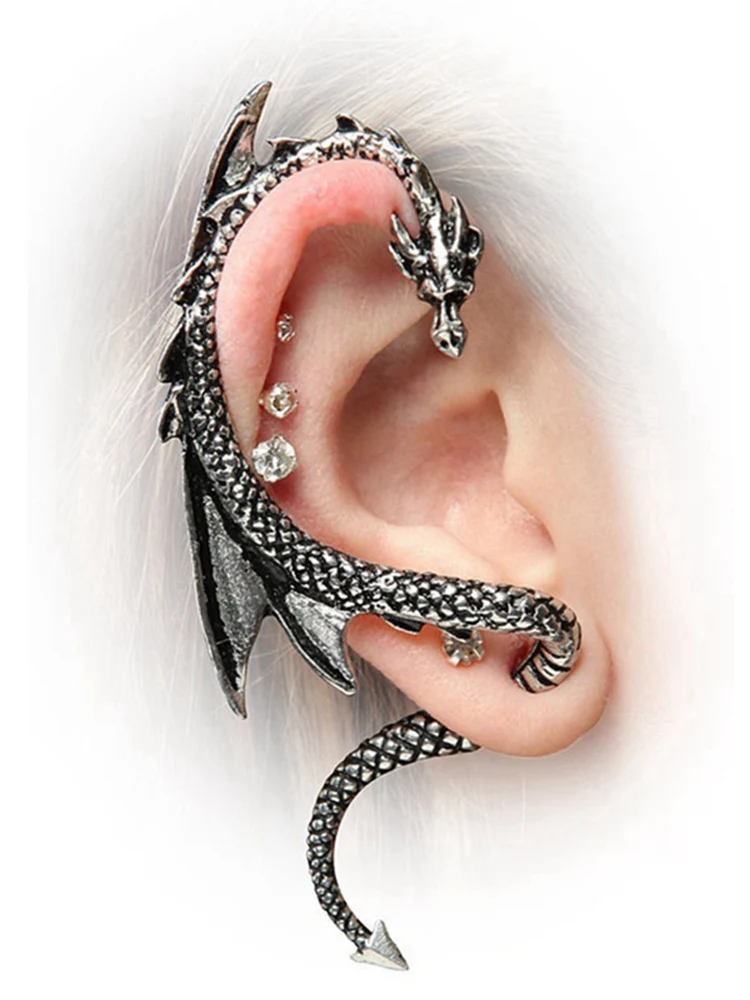 Серьги-каффы женские в стиле панк, готика, рок, дракон, змея