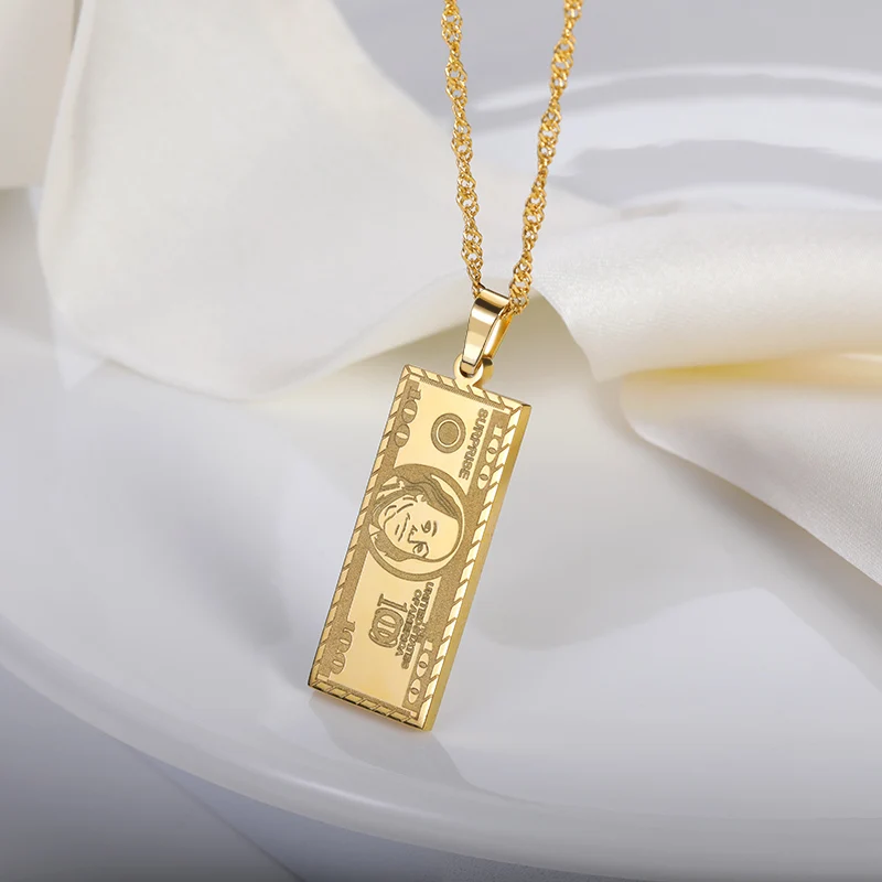 Ретро доллар денежный кулон ожерелье для женщин золотого цвета из Нержавеющей Стали Цепочка до ключицы хип-хоп ювелирные изделия модный подарок