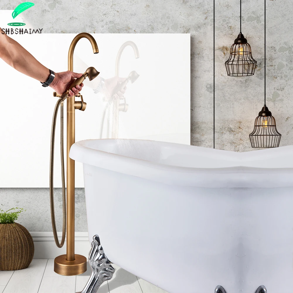 Античная латунь пол ванной комнаты стенд кран смесителя Две Функция 360 Вращение Носик свободный стоящий Когте образные ножки ванной кран