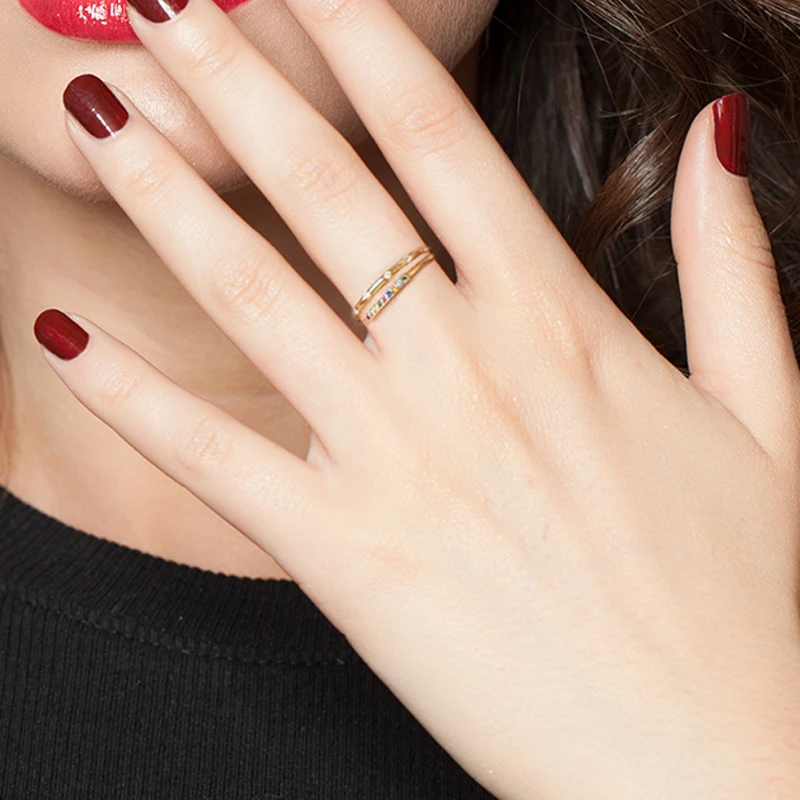 GS 925 стерлингового серебра Радуга Циркон звездой CZ позолоченное женское кольцо с бабочкой, регулируемая яркость, круглая Роскошные красочные хрустальные украшения 2021 тенденция