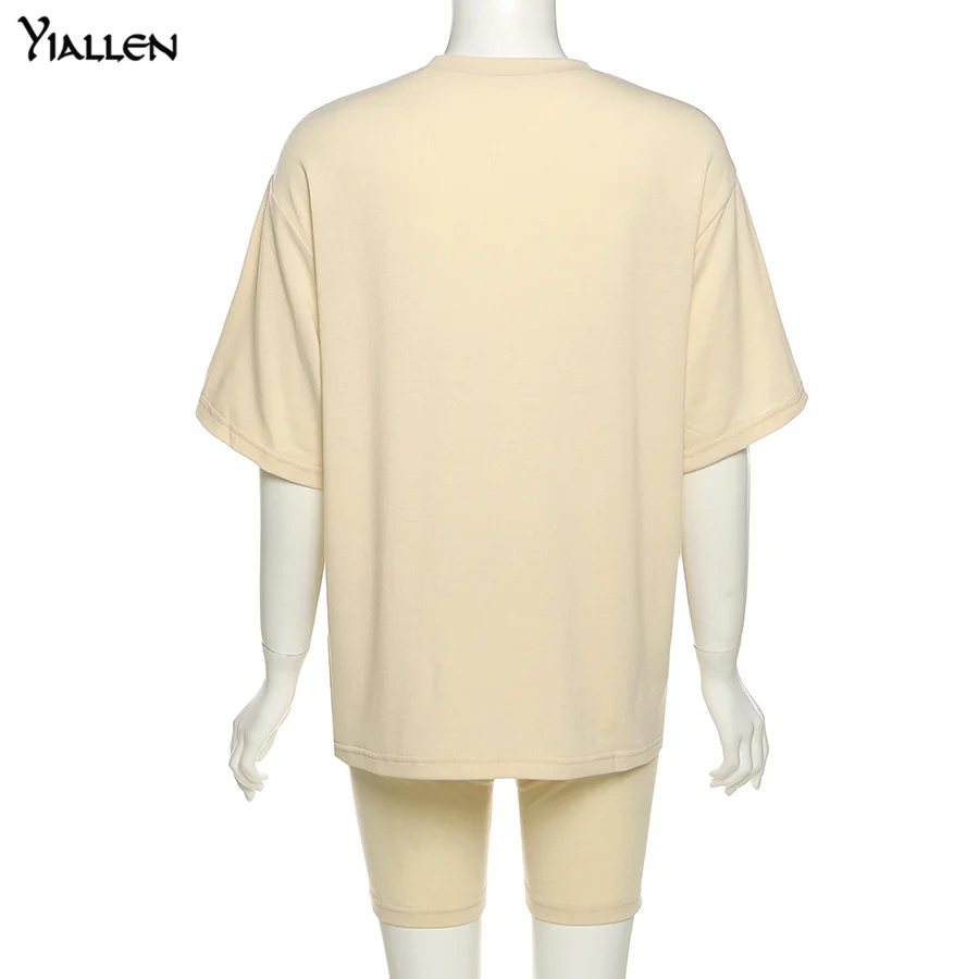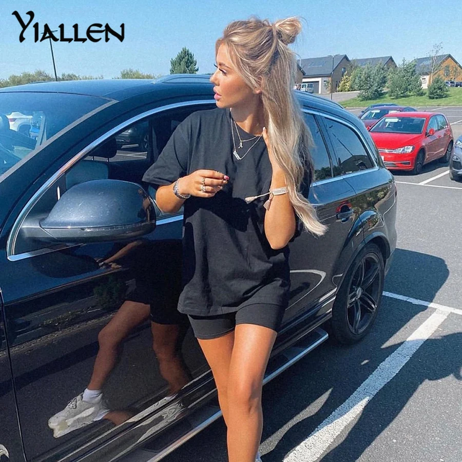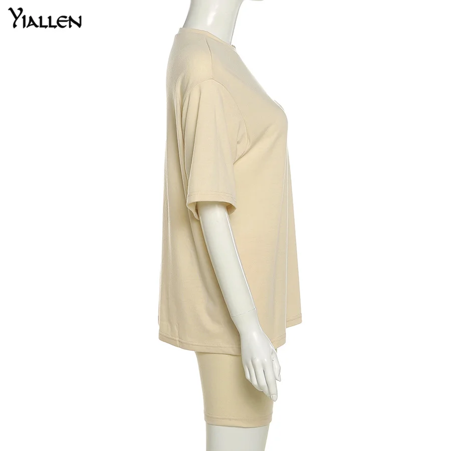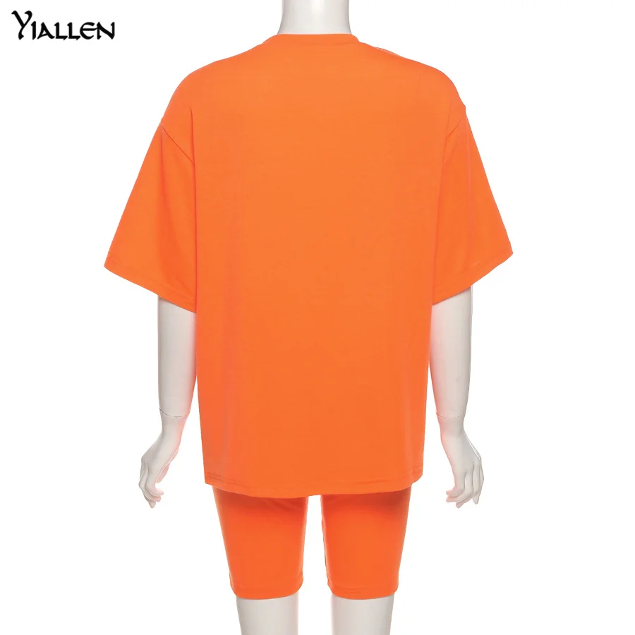 Женский Повседневный костюм Yiallen из 2 предметов, свободная Однотонная футболка и облегающие байкерские Шорты, модный комплект, уличная одежда, лидер продаж 2021