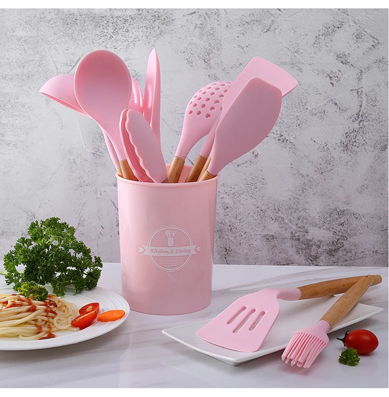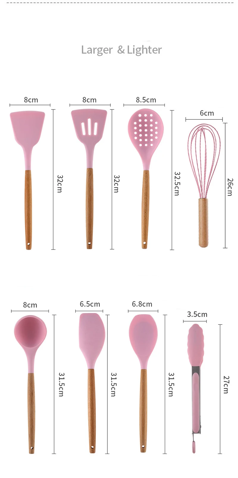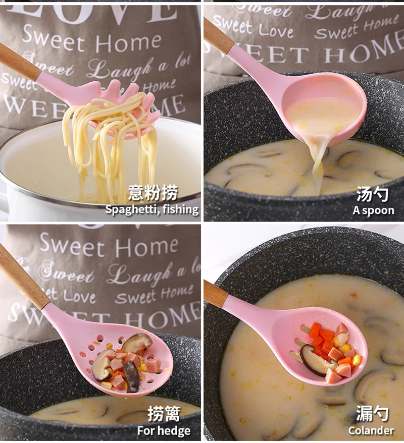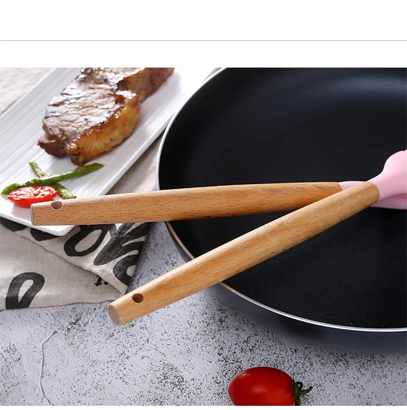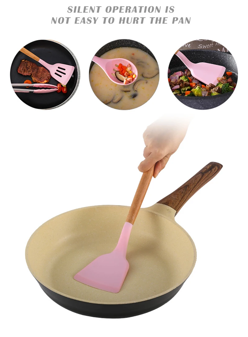 Набор силиконовых кухонных принадлежностей, антипригарная кухонная утварь с деревянной ручкой, кухонная утварь, лопатка, кухонные аксессуары, инструменты