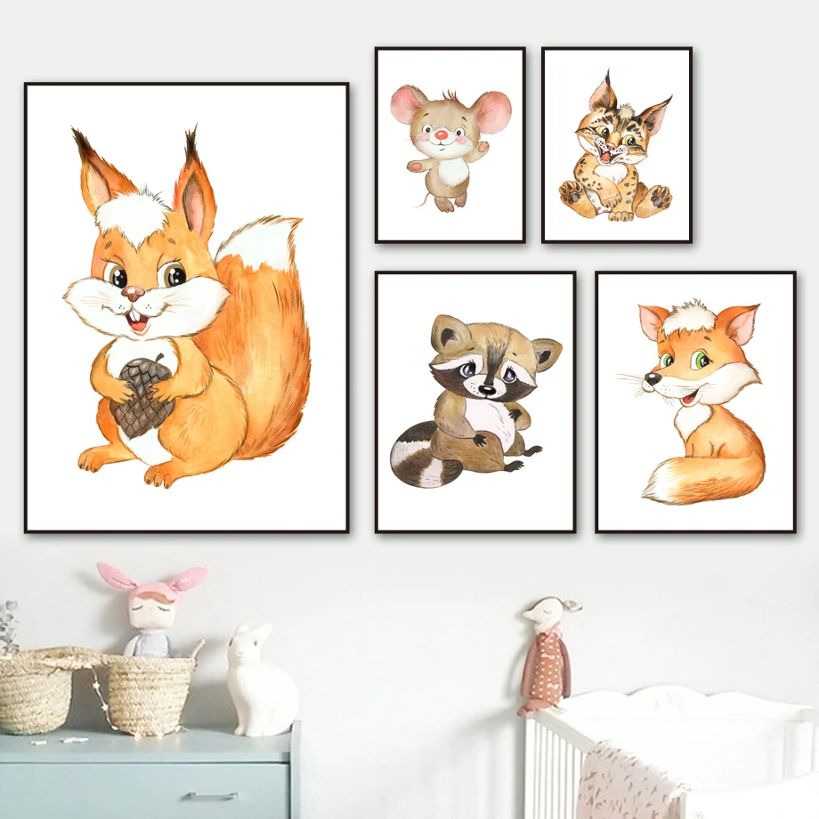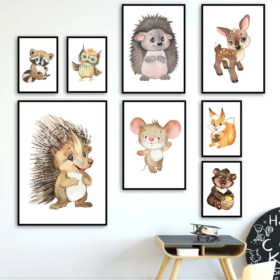 Плакат в скандинавском стиле, с изображением лисы, кролика, оленя, медведя, совы, ежа, волка, украшение для детской комнаты, наклейки на стену C62