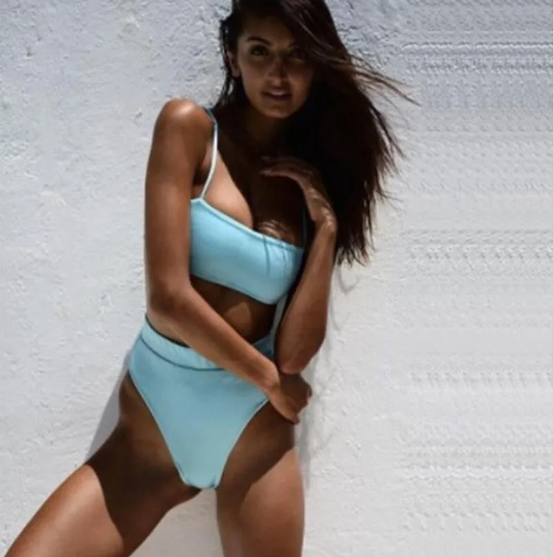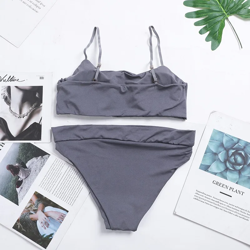 Купальный костюм с высокой талией, женское бикини с завышенной талией, купальный костюм из двух предметов для контроля живота, купальный костюм на лямках
