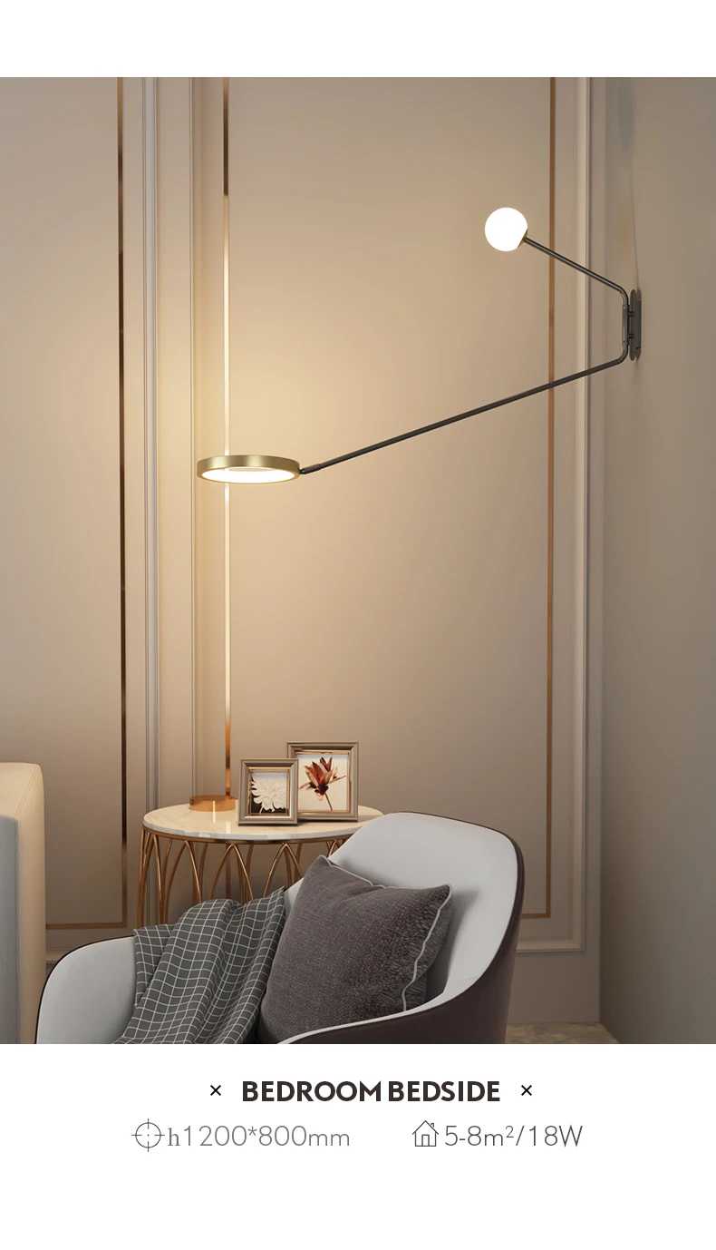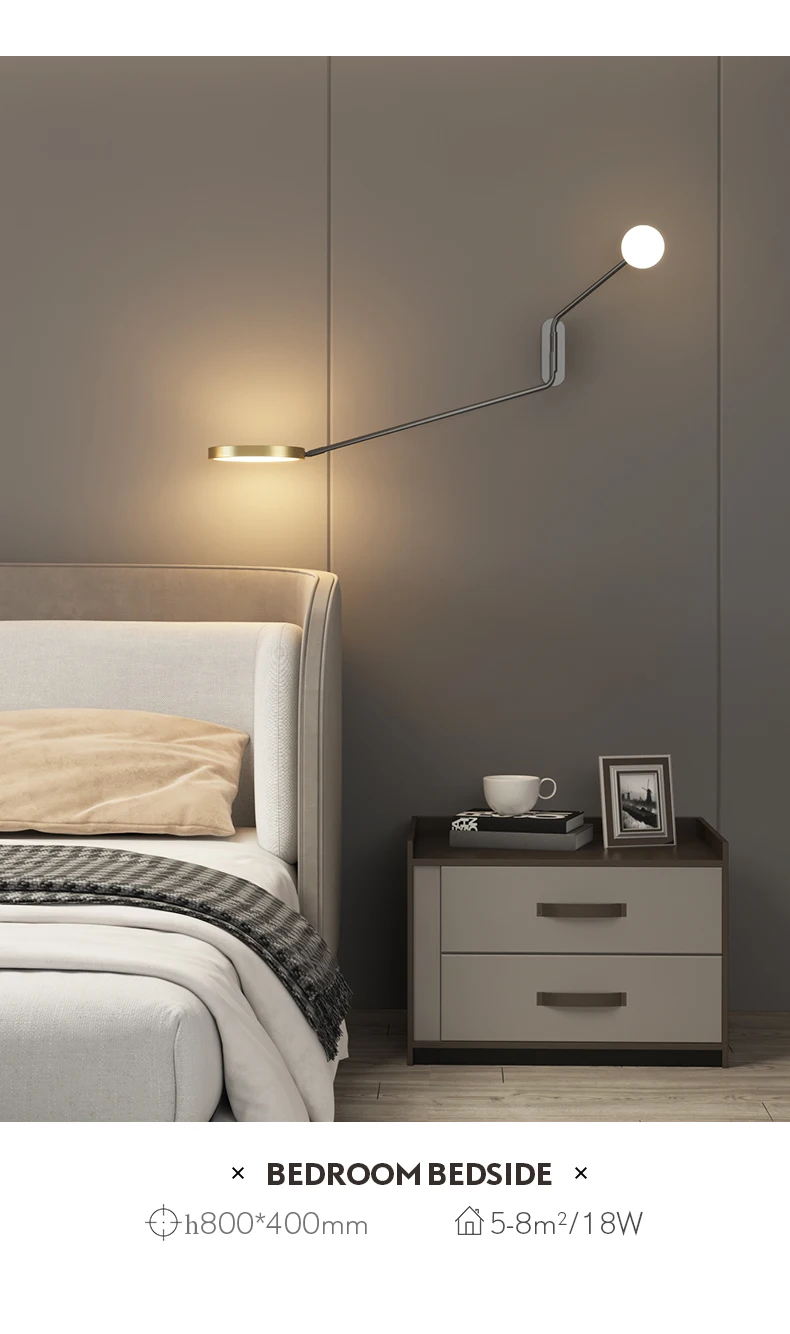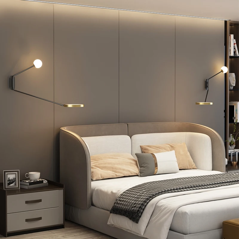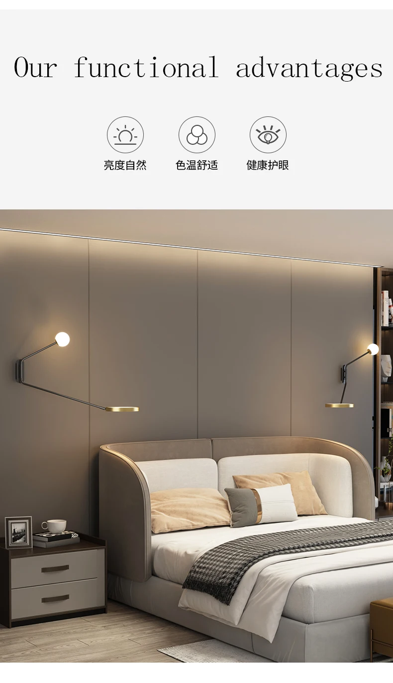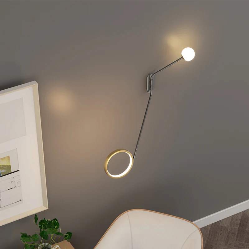 Современная круглая настенная лампа, регулируемая длинная телескопическая вращающаяся настенная лампа для гостиной, креативный прикроватный светильник для чтения, спальни