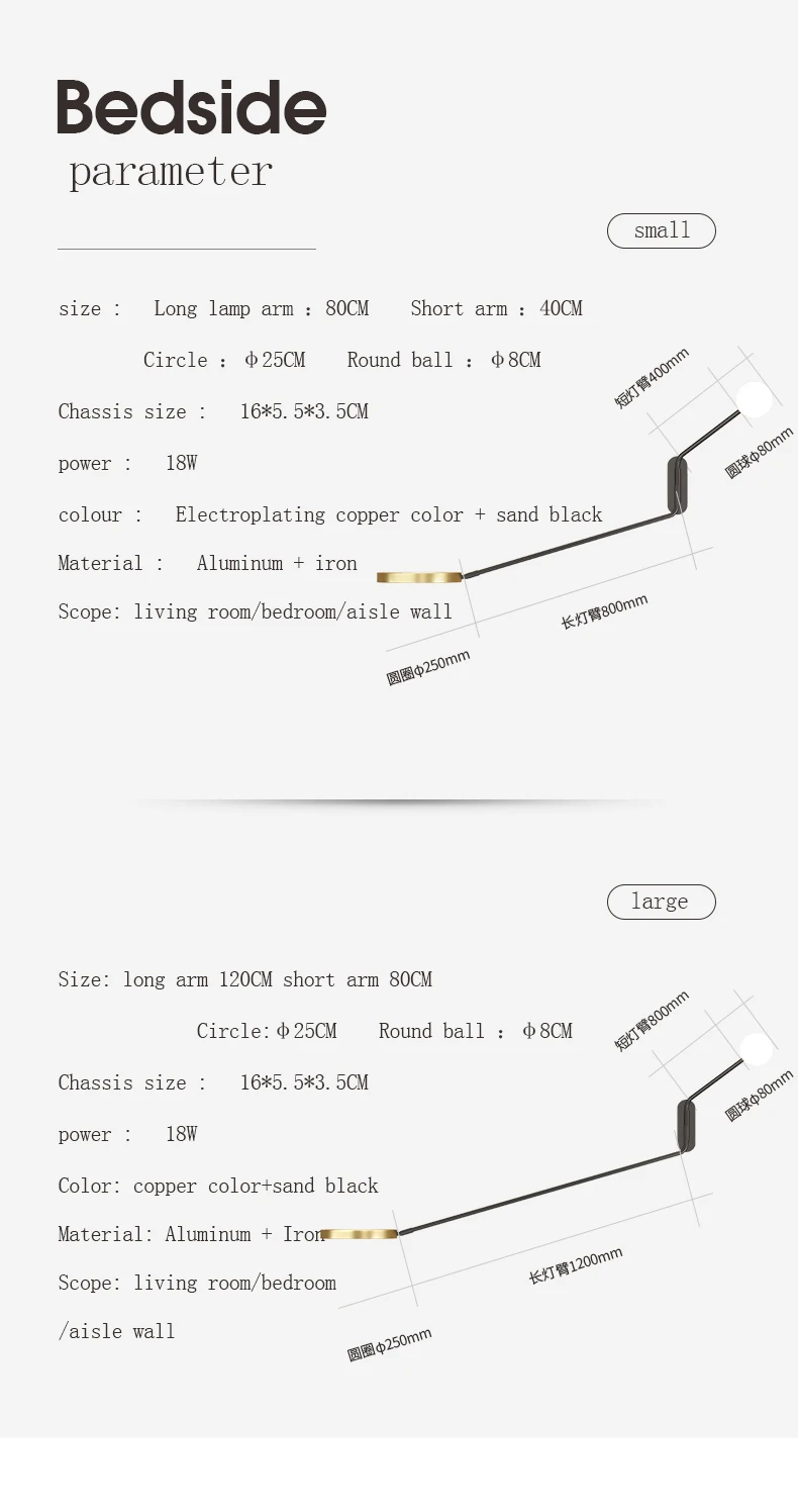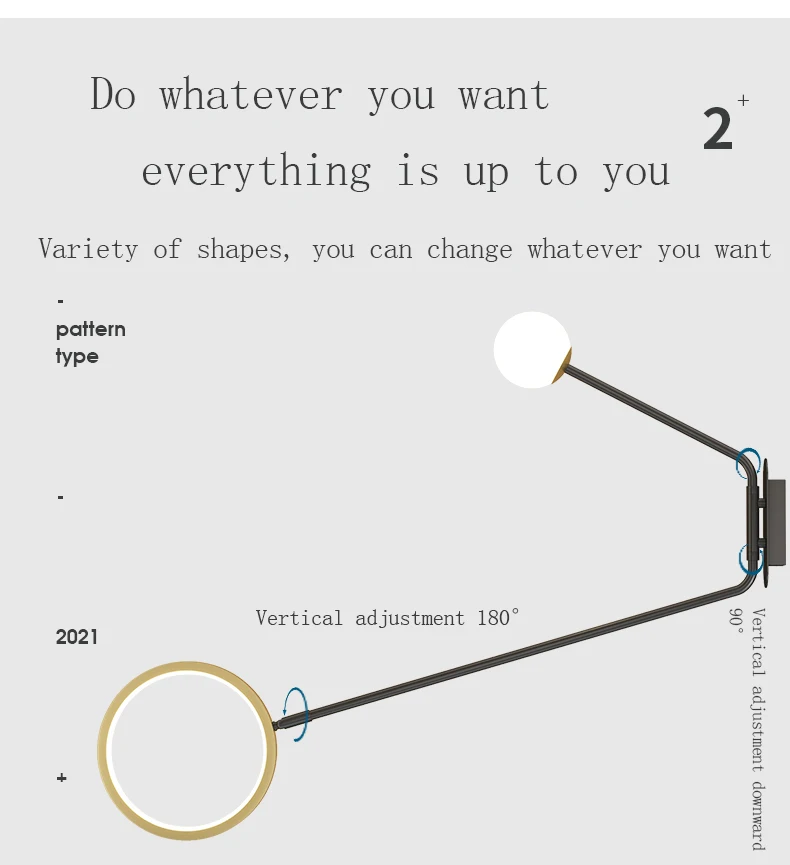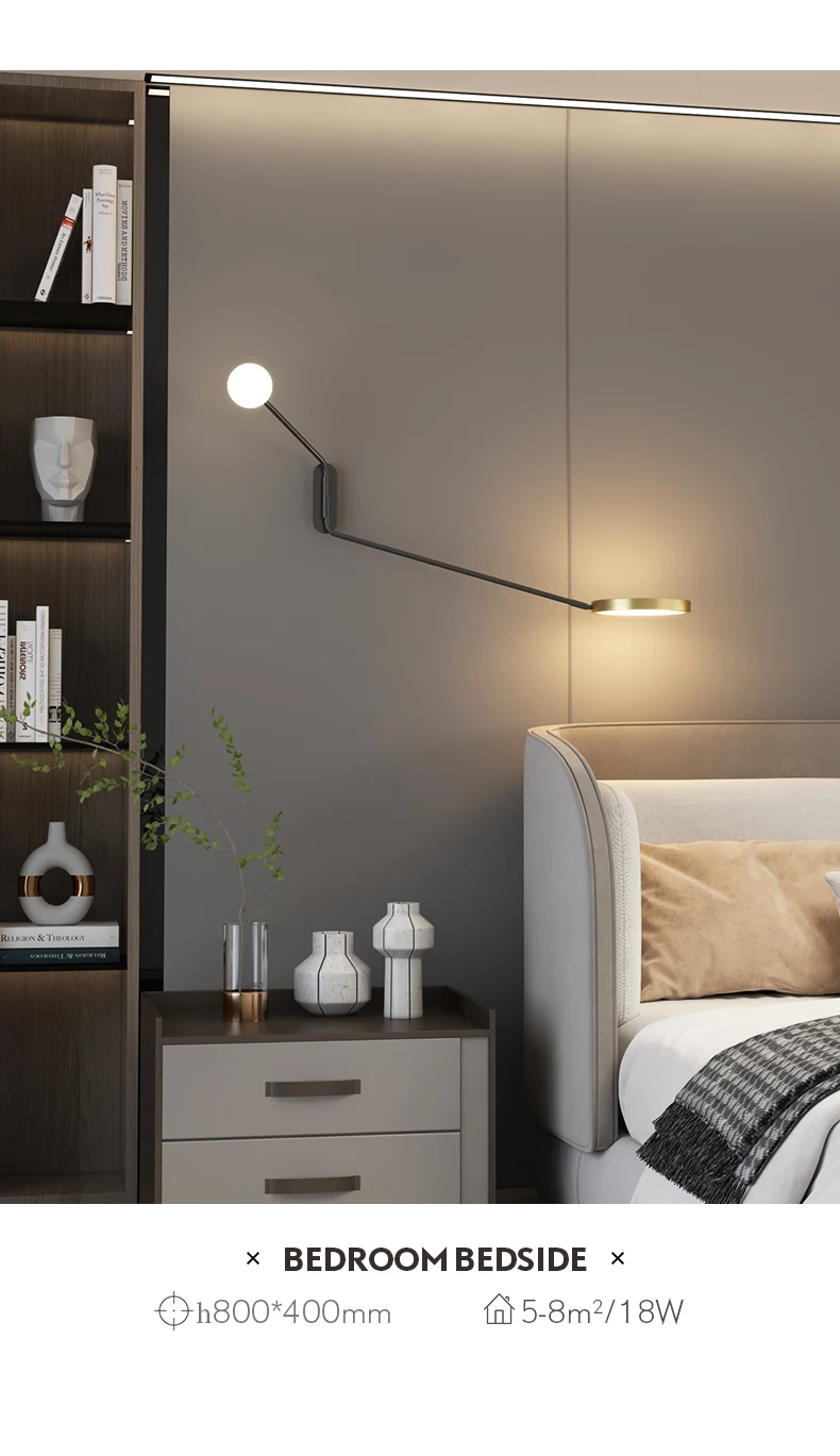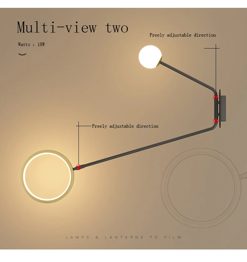 Современная круглая настенная лампа, регулируемая длинная телескопическая вращающаяся настенная лампа для гостиной, креативный прикроватный светильник для чтения, спальни