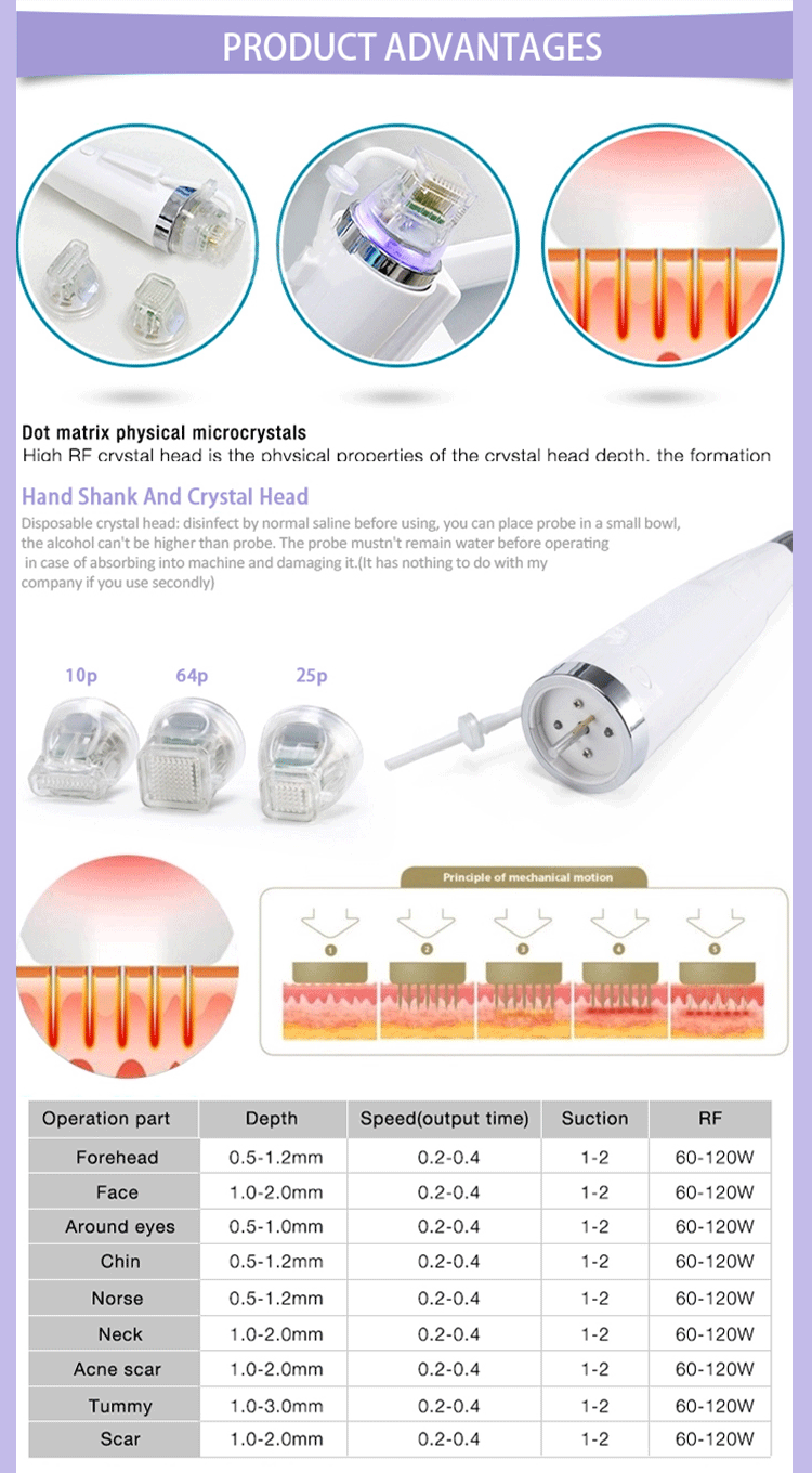 Повышение эластичности кожи, удаление акне и стимулирование регенерации коллагена. Радиочастотная микрообработка является относительно передовым методом лечения, который оказывает хорошее влияние на слабительность кожи, затонувшую кожу и увеличенные поры, вызванные различными причинами, и может быстро сделать кожу гладкой и гладкой.
