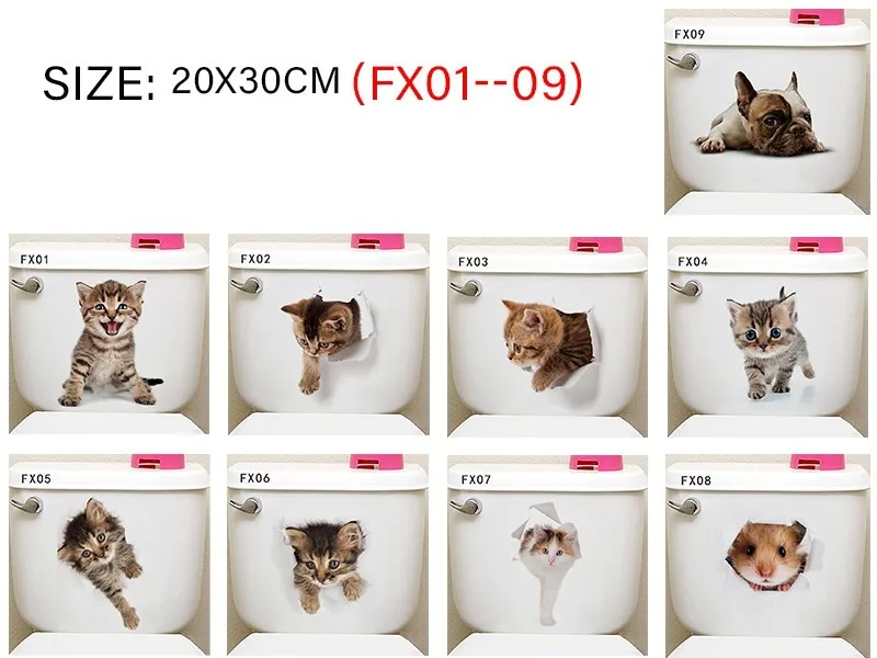 Наклейки на унитаз, искусство 3d, котенок, щенок, фреска сделай сам, забавный мультяшный Фреска, ванной, ПВХ, водонепроницаемый домашний декор