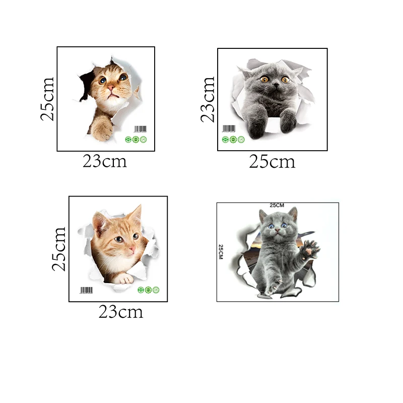 кошек 3D наклейки на стену Туалет Наклейки отверстие просмотра ярки...