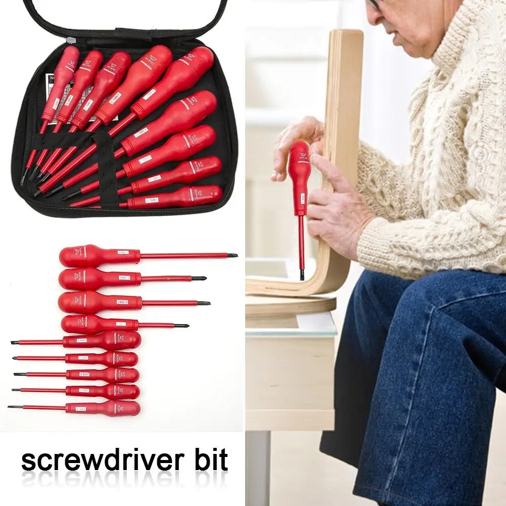 Набор наконечников для отверток, 9 шт., изолированный ручной инструмент, высокое напряжение 1000 В, ремонт, крестовая изолированная отвертка