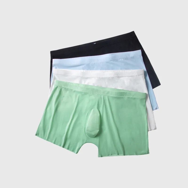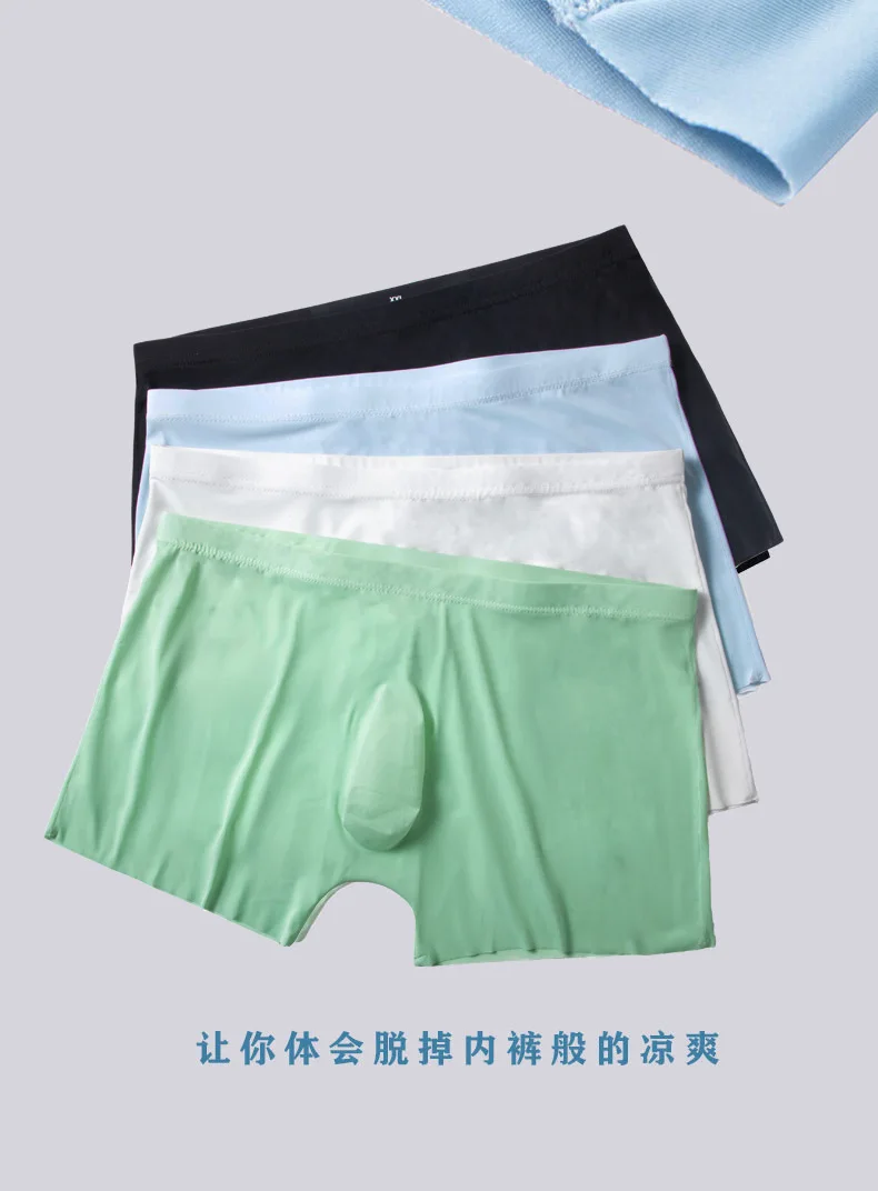 4 предмета, нижнее белье Для мужчин трусы-боксеры из Ice Silk для Для мужчин s бесшовные чистого Цвет Мужской плоский Штаны быстрое высыхание c выпуклой частью для мужчин карман под Штаны