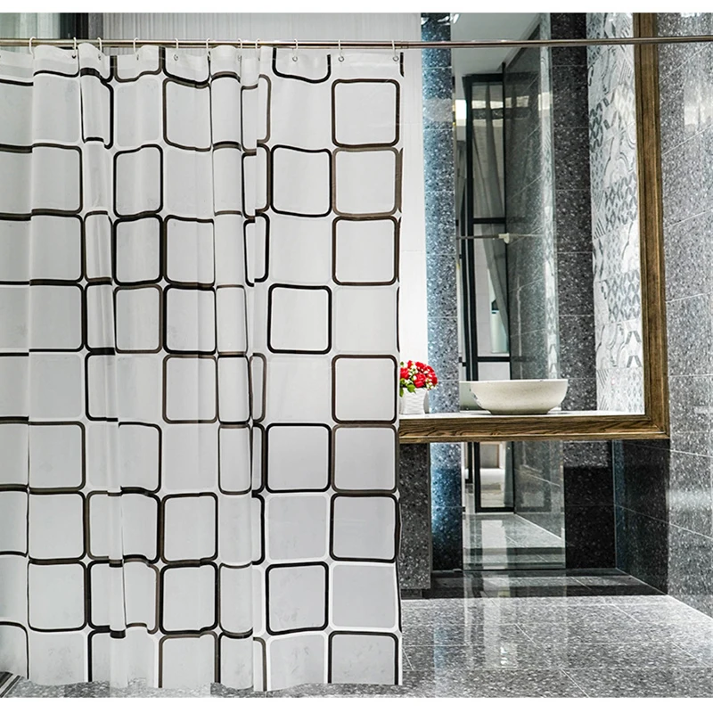 Полупрозрачная занавеска для душа, водонепроницаемая занавеска для ванны, s клетчатая занавеска с гальваническим принтом, занавеска для купания с крючками, аксессуары для ванны