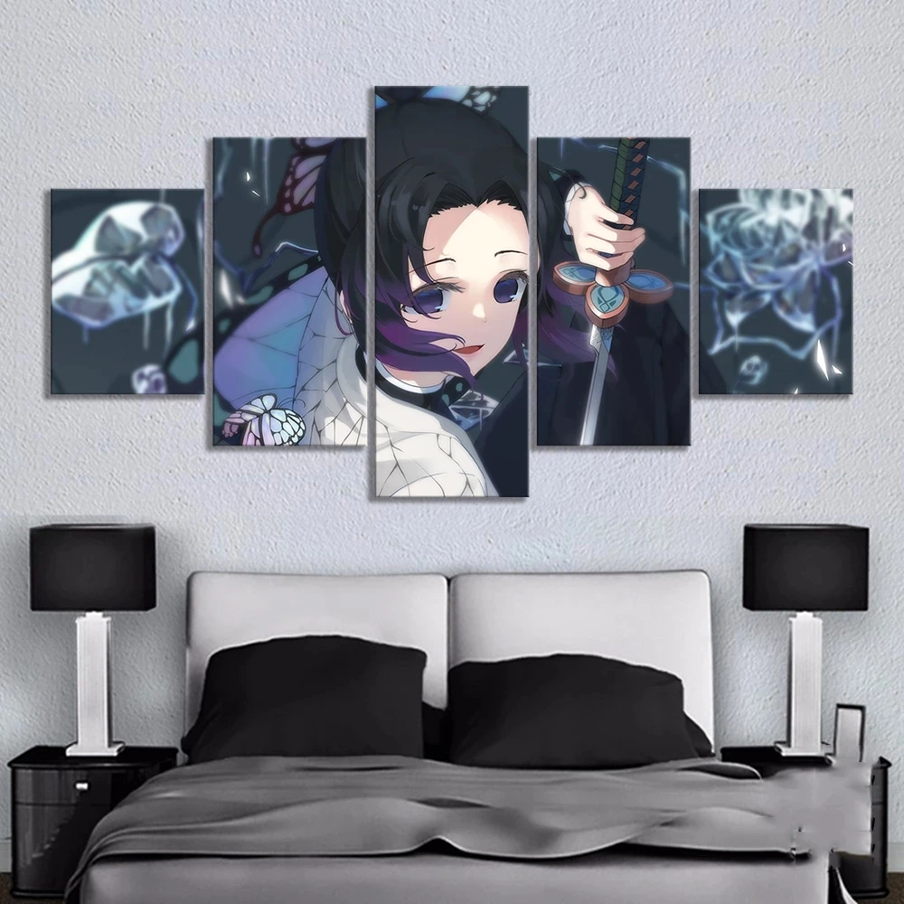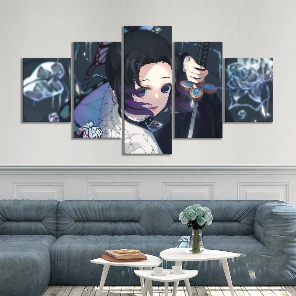 Модульная картина для украшения дома, 5 шт., HD Аниме-картина с девушкой Kimetsu No Yaiba Shinobu, плакат, холст, рассекающий демонов, принты, настенное искусство