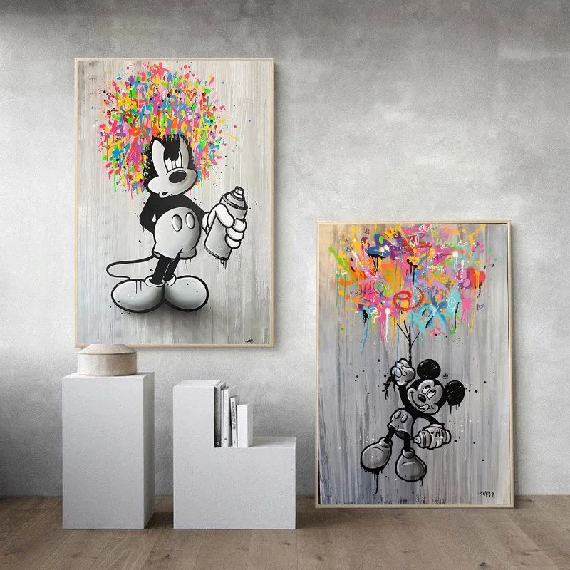 Диснеевский мультяшный холст с Микки и Минни, настенное искусство, ...