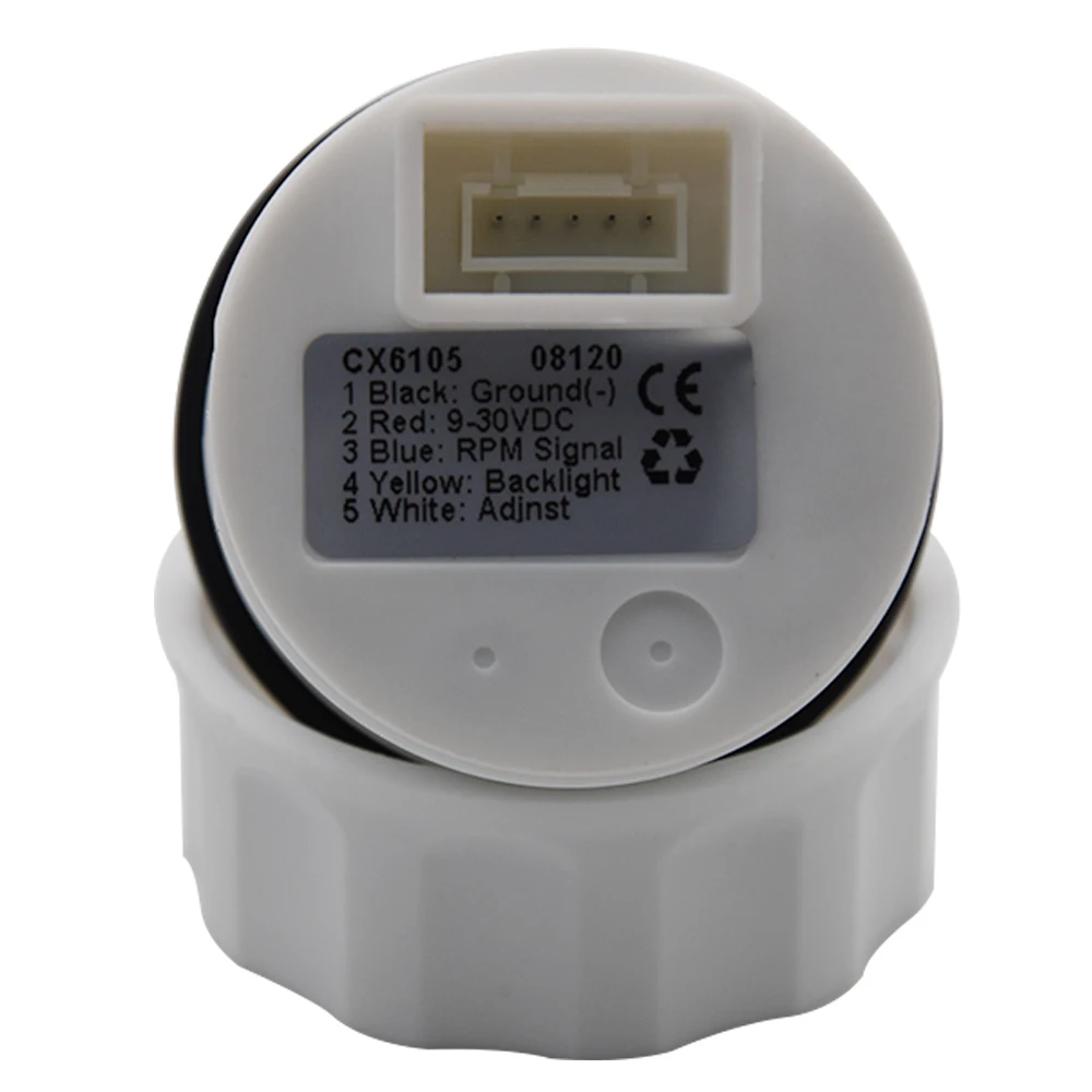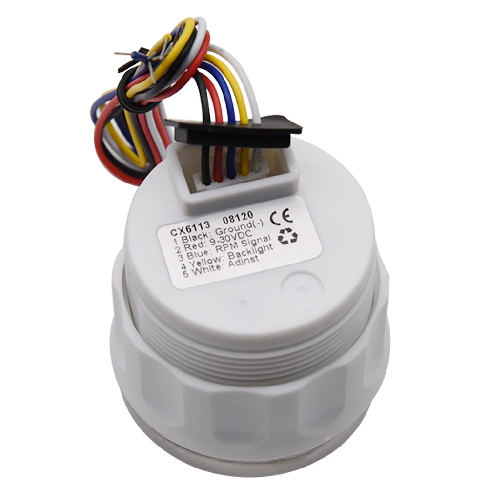 Материалы: нержавеющая сталь + никелированный пластикРабочее напряжение: 12 В/24 ВПодключение: красный-аккумулятор (+ 9-32VDC) синий-аккумулятор (-) черный-сигнал, оранжевый-черный свет (+ 9-32VDC)Диапазон индикации: 0-4000 об/мин, 0-7000 об/минВходной сигнал: плисовый сигнал от тахосенсора, двигателя, генератора, катушки зажигания, датчика коленчатого вала и т. д.Регулируемый коэффициент скорости: 1-300Класс защиты: IP67, может работать под водой 1 м