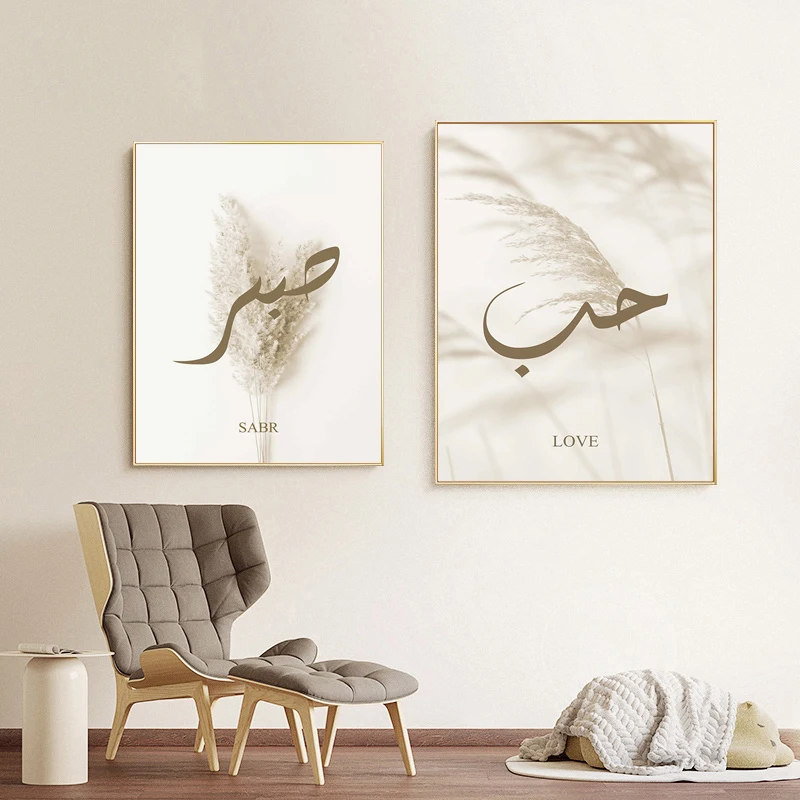Исламский бежевый арабский калиграфия настенный художественный плакат мусульманский Картина на холсте печати картины для интерьера гостиной Декор