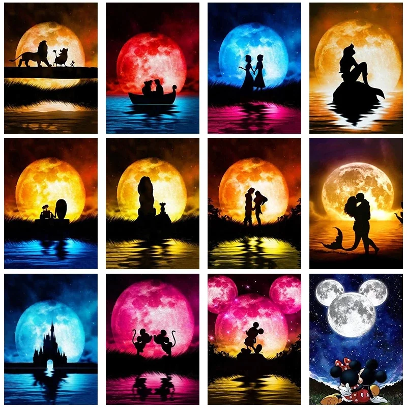 Квадратная Алмазная вышивка 5D, мозаика для вышивки крестиком тень, луна, принцесса, украшение для дома