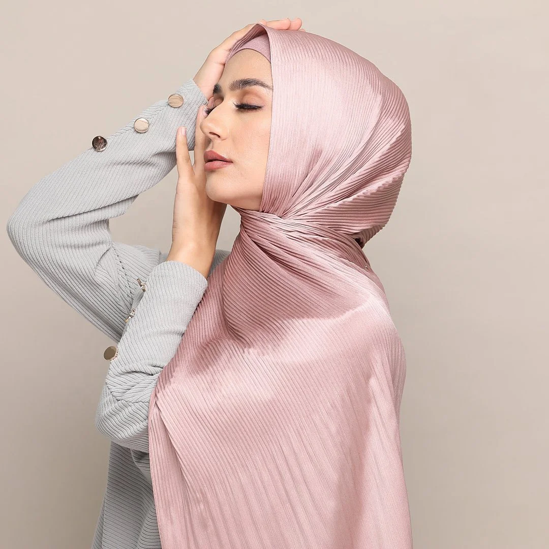 Индивидуальные хиджабы с плиссированными атласными шелковыми шальками, женские длинные Хиджабы, Популярные 10 шт.лот