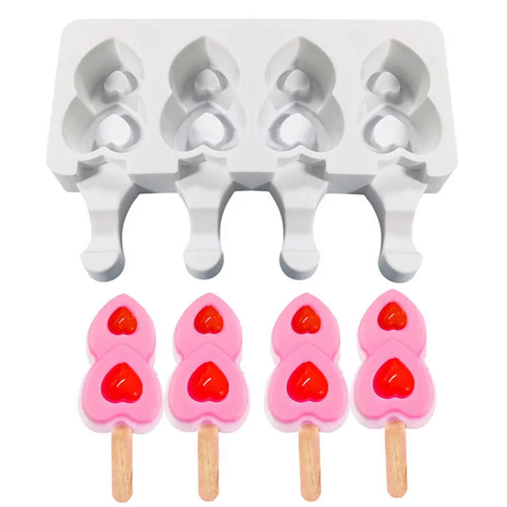 Силиконовая форма для мороженого в форме двойной любви, форма для эскимо, самодельный инструмент для изготовления «сделай сам»