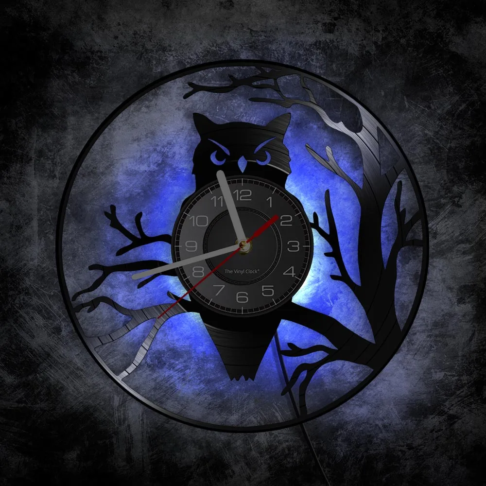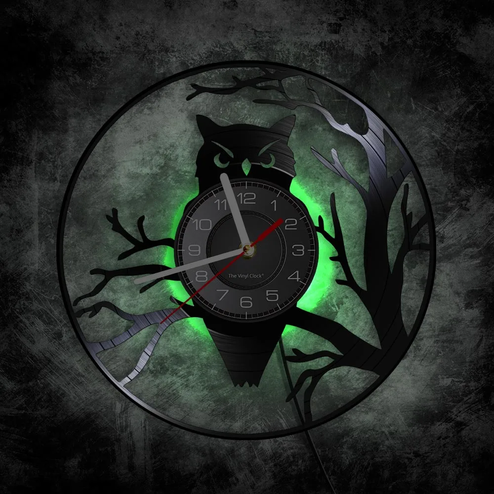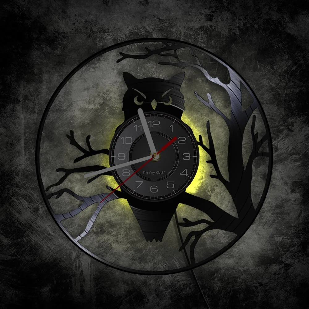 Настенные часы Night Owl, винтажные тихие часы с виниловой пластинкой, домашнее искусство, спальня, животные, декор для гостиной, 7 цветов, свет
