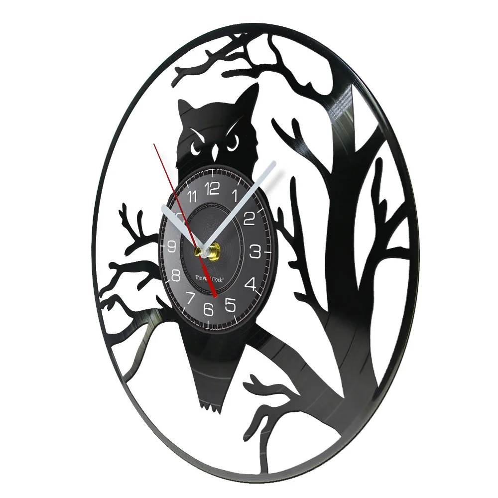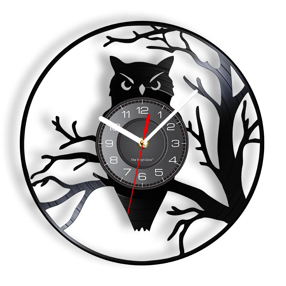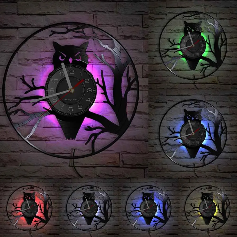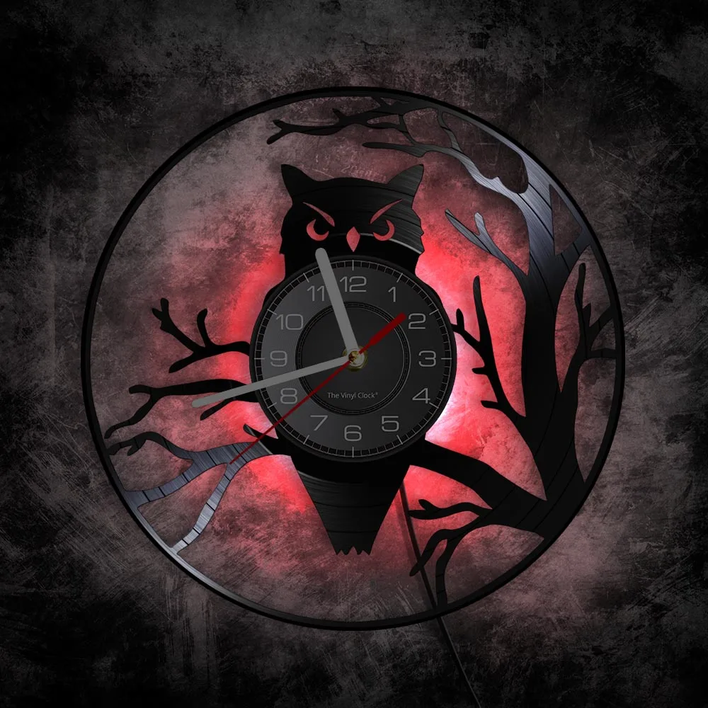 Настенные часы Night Owl, винтажные тихие часы с виниловой пластинкой, домашнее искусство, спальня, животные, декор для гостиной, 7 цветов, свет