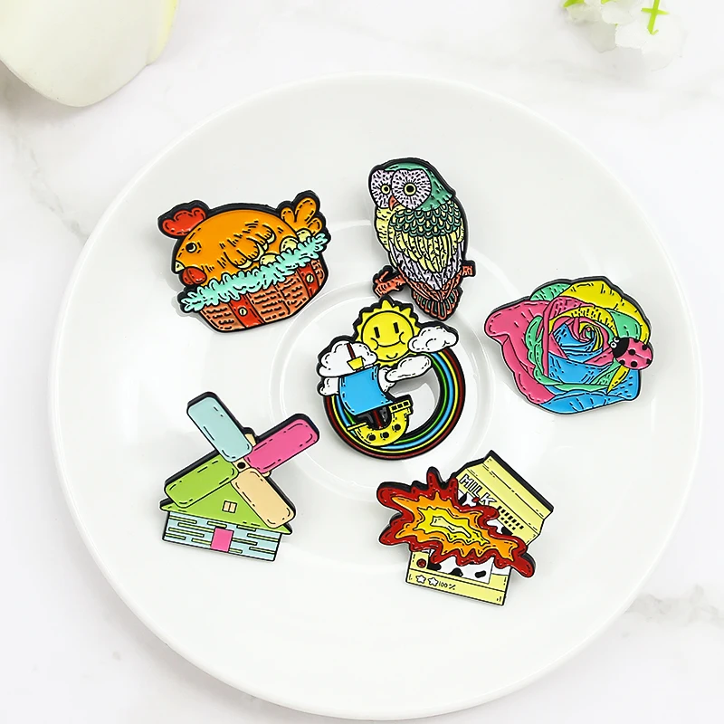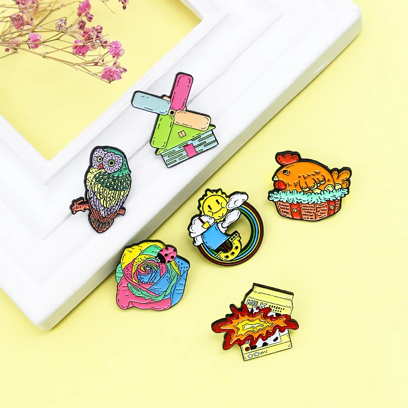 GDHY мультфильм Радуга Роза Эмаль Булавка Сова курица молочная ветр...