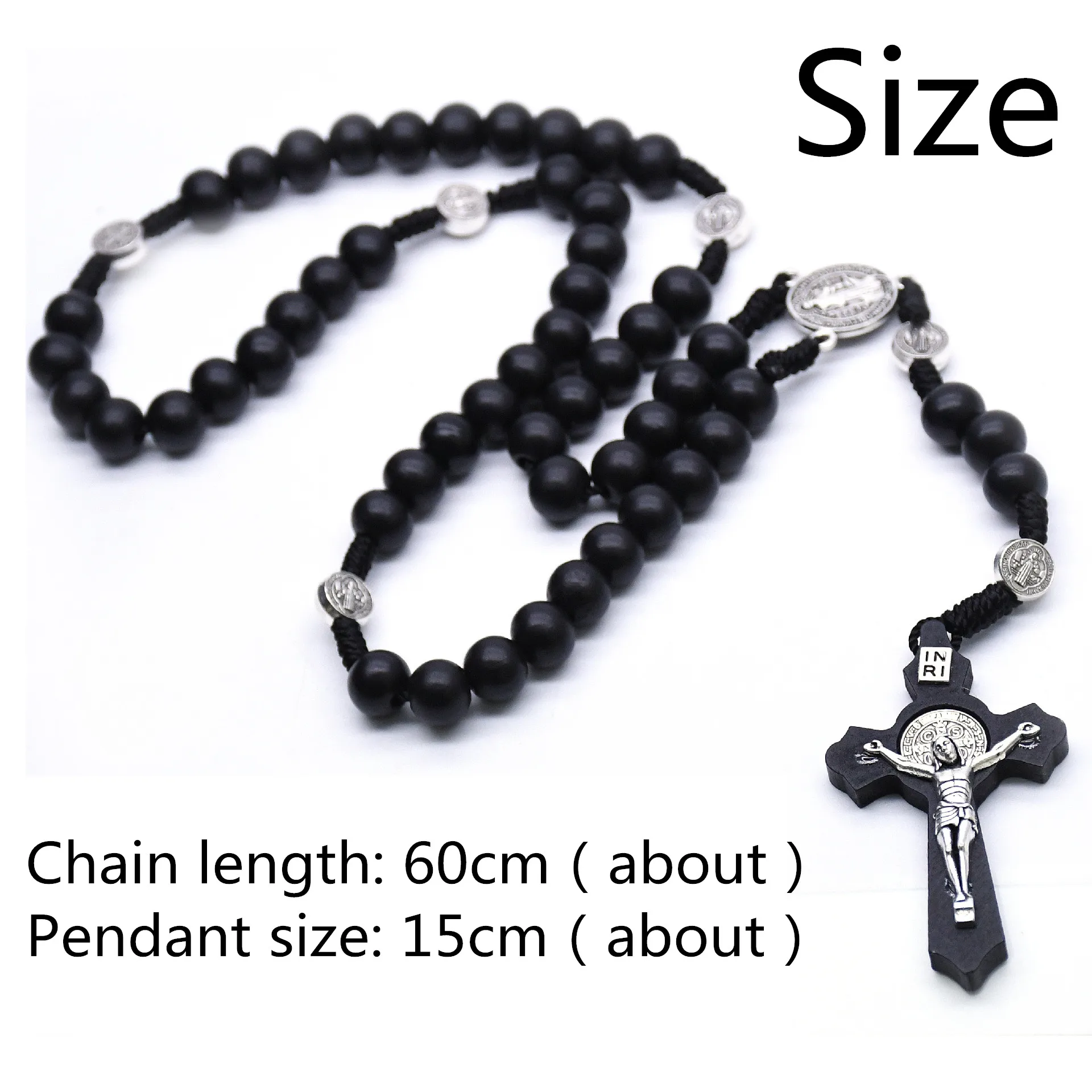 Новый модный деревянный черный четки ручной работы ювелирные изделия аксессуары для мужчин и женщин элегантное ожерелье с крестом католическим крестом