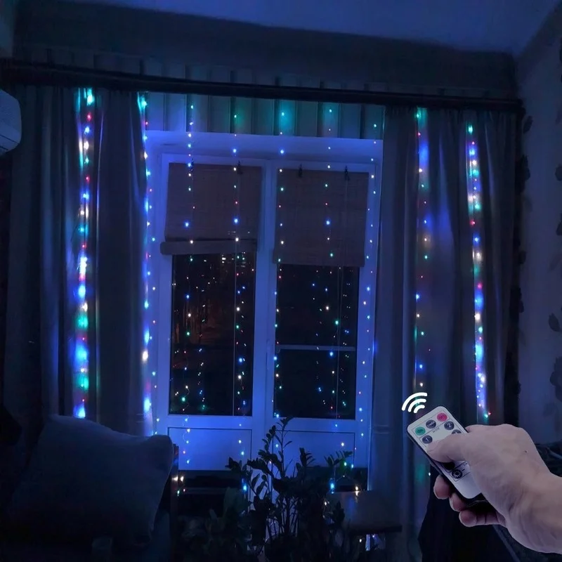 СВЕТОДИОДНАЯ Гирлянда-занавеска с дистанционным управлением, 3 м