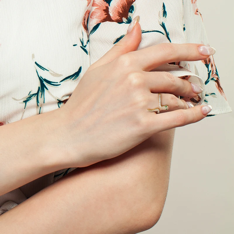 Автоклав 100% 925 пробы цвет серебристый, Золотой под змеиную кожу с изменяемым размером кольцо Регулируемый животных Для женщин очаровательные кольца, рок, Панк ювелирные Bague anillo W5