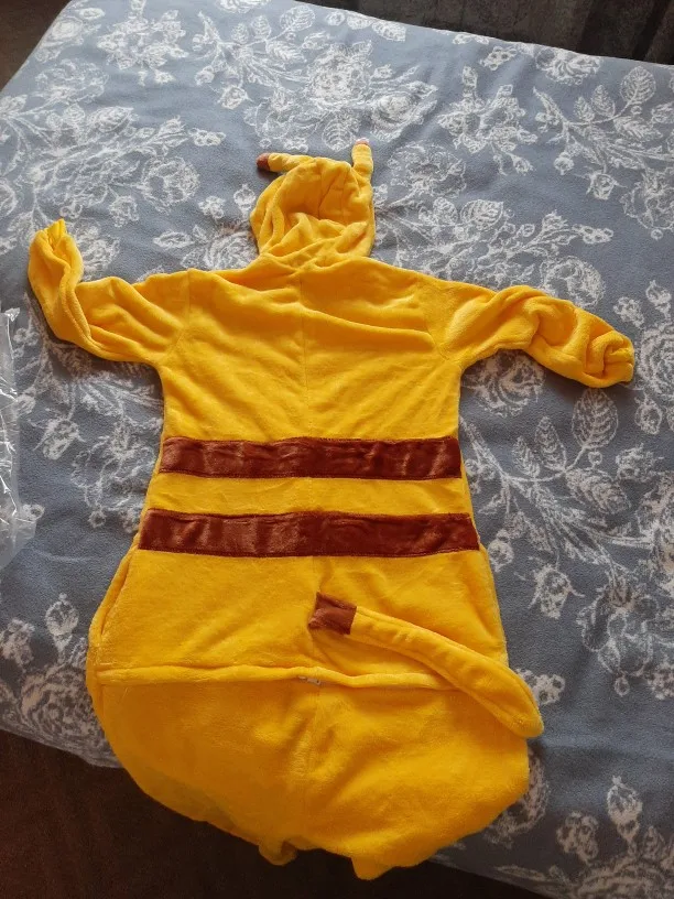 Брала сестре в подарок на Новый год. Пришло удивительно быстро. По размеру пока не знаю, но внешний вид произвел крайне положительное впечателение. Костюм очень яркий, теплый и мягкий. Мордочка у Пикачу тоже симпатичная.
