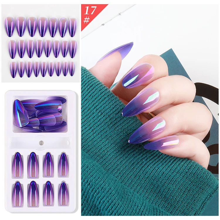 24 шт.компл. полное покрытие, градиентные блестящие накладные ногти...