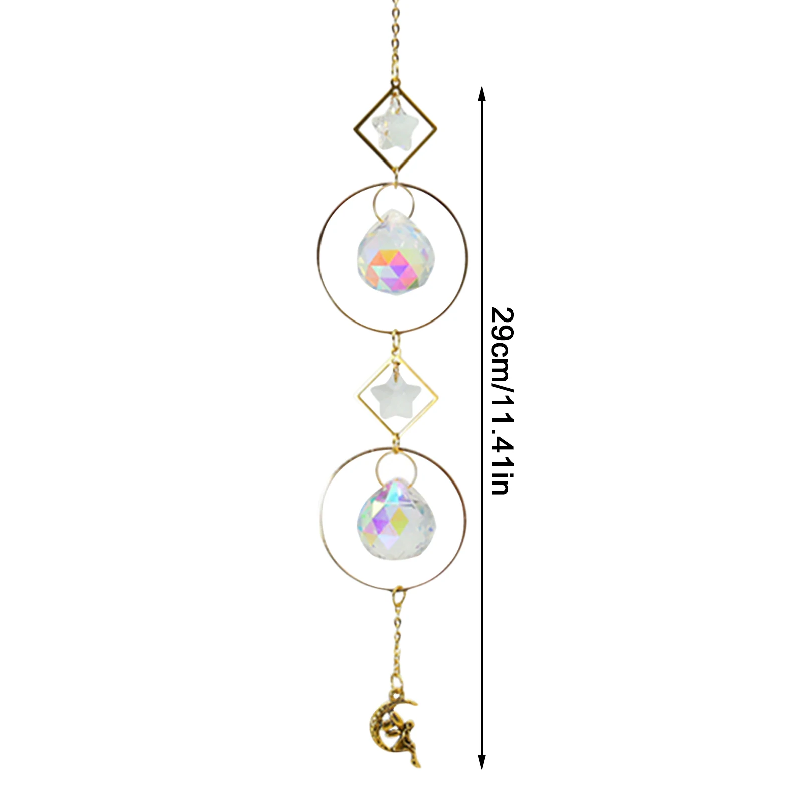 1. Высокое качество изготовления: длина основной части блестящего призматического кристалла составляет около 10-13 дюймов/25,40-33,02 см. Материал: изготовлен из блестящего и безупречного кристалла, супер сияющего, прозрачного инфракрасного кристалла, абсолютно великолепного качества.2. Декоративное разнообразие: восьмиугольные кристаллы, кристаллы капель и Хрустальные шарики подходят для различных декоративных мероприятий, таких как: сады, детские комнаты, рождественские деревья, шторы, окна, растения, деревья, люстры, стены, полки, шкафы, автомобили, подъезды, балконы, передние двери и т. Д.3. Создатель радуги: на солнце это Кристальное украшение будет цвести красивые цветы, не только Радуга, Захваченная призмой хрустального шарика, но и Красочные Подвески, вызванные кулонами. Красиво и сверкающе. Создайте очаровательный светильник по всей комнате. Идеально подходит для украшения дома, фэн-шуй и подвесных кристальных украшений, таких как некоторые специальные подарки.4. Изысканные и Идеальные подарки: сюрприз для девочек, подружек, мам, бабушек, лучших друзей, дочерей или себя на Рождество, дни рождения, юбилеи, праздники, День Святого Валентина, свадьбы, помолвки, поздравления, вечеринок. Эти хрустальные подвески-лучший подарок, который вы должны им дать.5. Послепродажное обслуживание: мы уверены, что вы влюбитесь в наши хрустальные подвески. Если у вас есть какие-либо вопросы, пожалуйста, свяжитесь с нами, и мы поможем вам.Характеристики:Материал: хрусталь, металлУпаковка: пакет из пузырчатой пленки в виде конвертаУпаковочный лист:1 * Кристальный колокольчик ветра