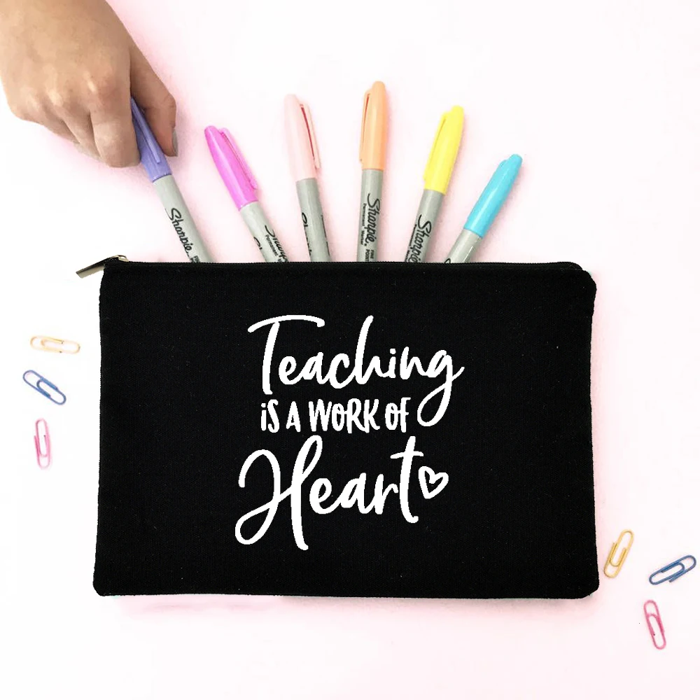 Учение-это работа сердца с радужным принтом, модная сумочка для карандашей, учительницы, косметички на молнии, сумка для макияжа, органайзер, кошелек, подарок
