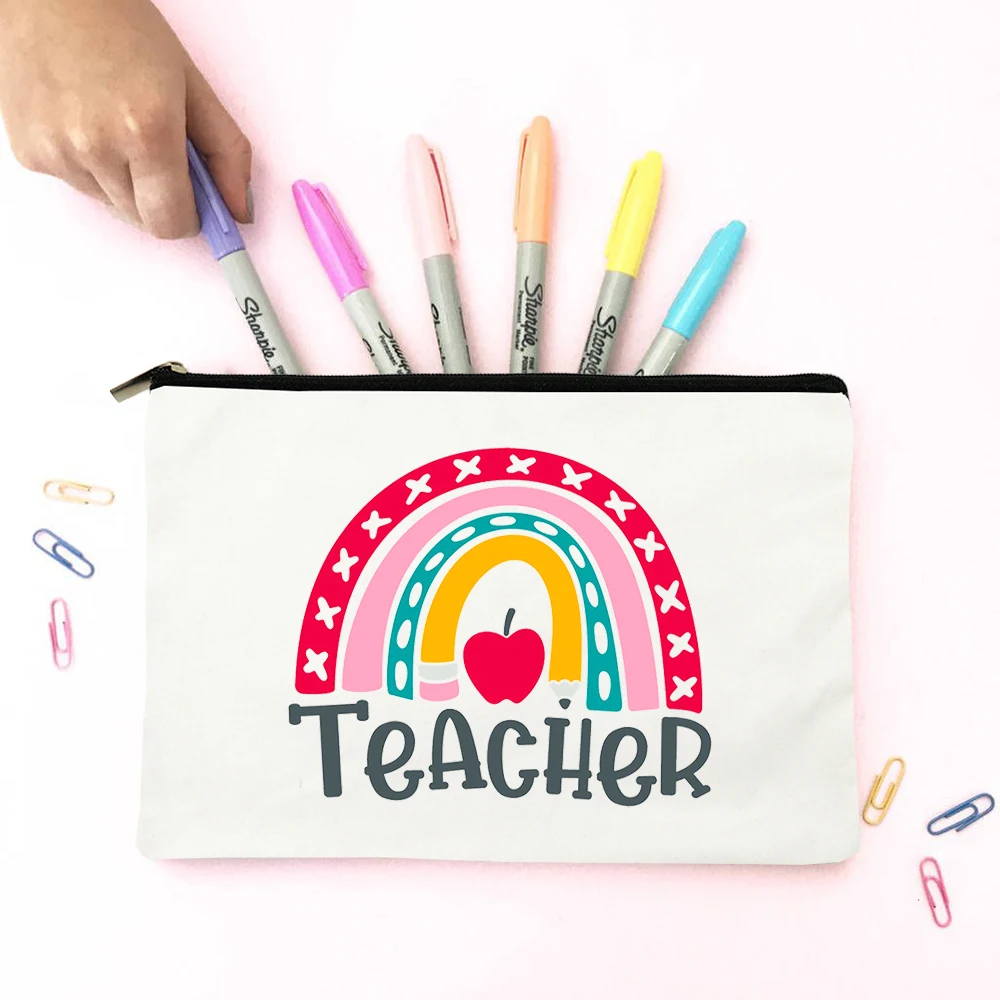 Обучения работы, с принтом в виде сердца и с принтом радуги модная сумочка для карандашей учитель жизни косметички, на молнии, косметичка, сумка-Органайзер Кошелек подарок