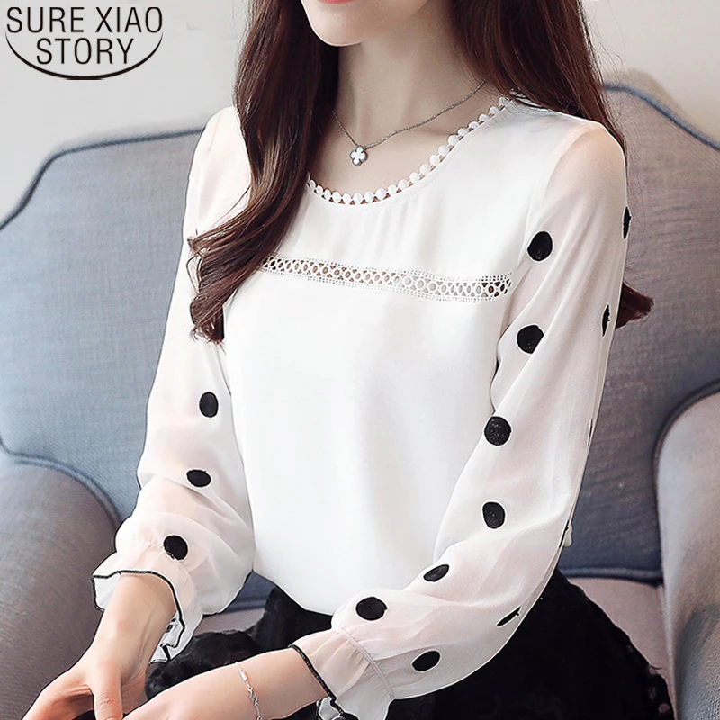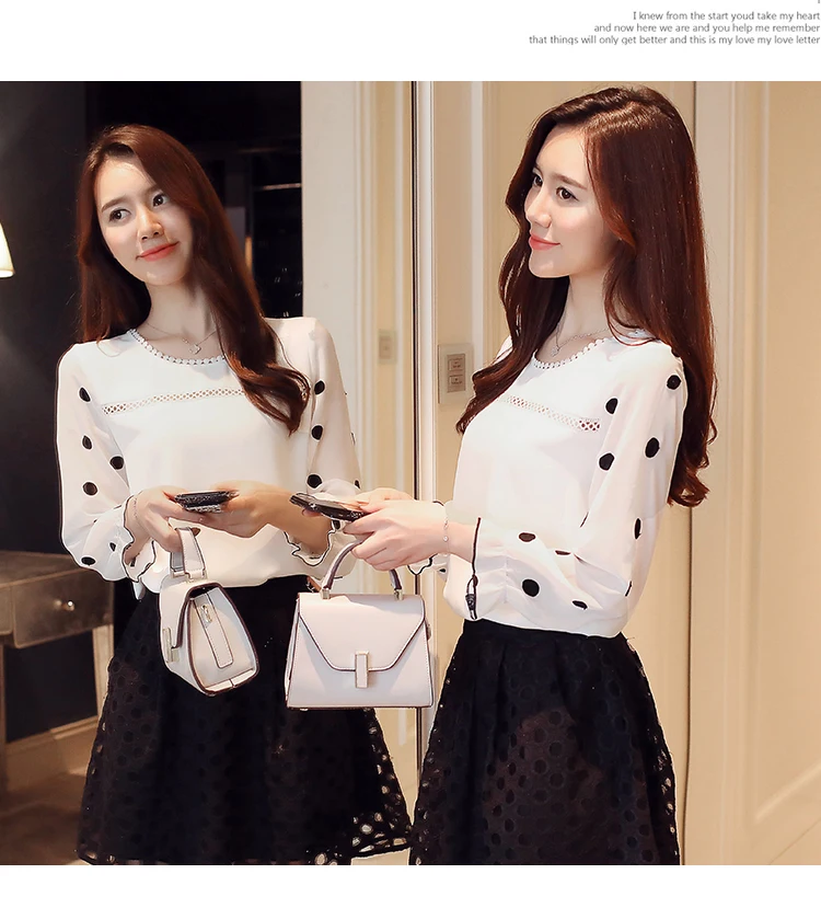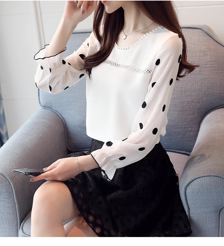 Шифоновая женская одежда 2022, женская блузка с длинным рукавом, рубашка, модные милые женские топы в черный горошек и белый цвет, блузы D383 30