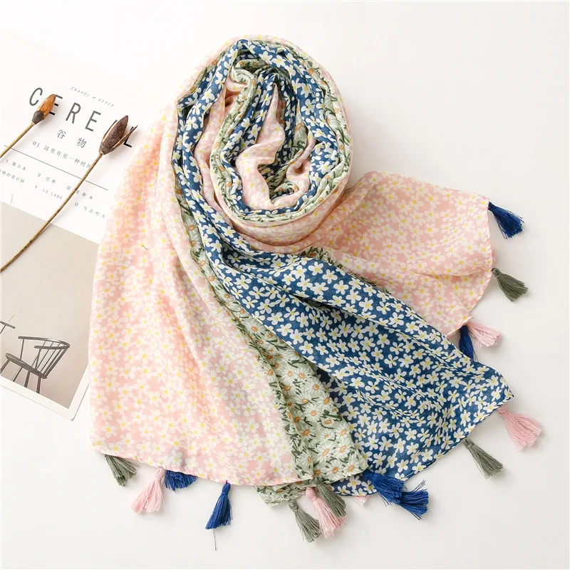 Шарф VISROVER из вискозы с принтом в виде маленького цветка, летний...