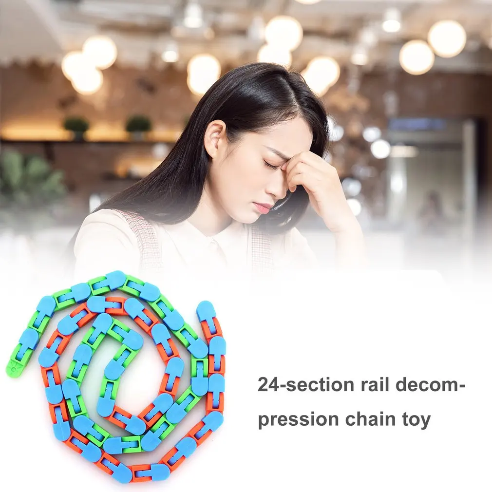 Забавные треки велосипедная цепь трек головоломка декомпрессионные сенсорные игрушки вращающаяся цепь 24 секции Обучающие игрушки случайный цвет