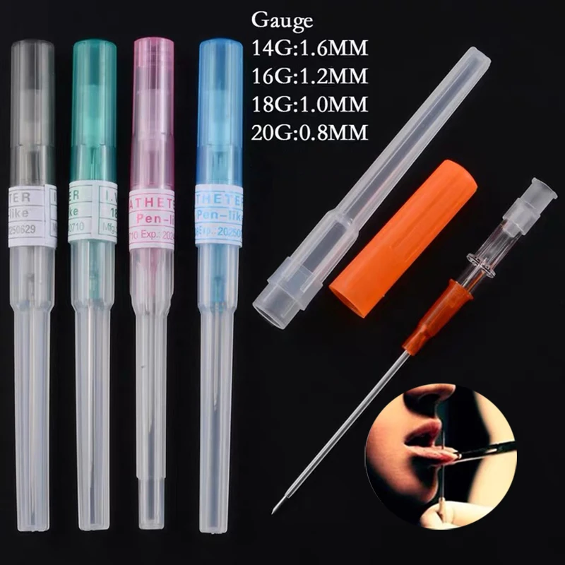 Иглы для пирсинга с катетером, Стерилизованные Иглы Для Пирсинга Ушей, носа, губ, пупка, профессиональная тату, ушей, губ, живота, 1 шт.