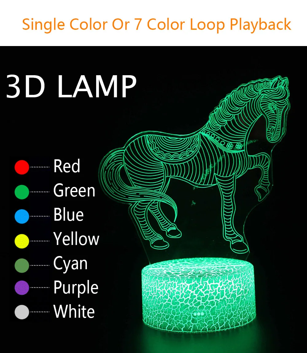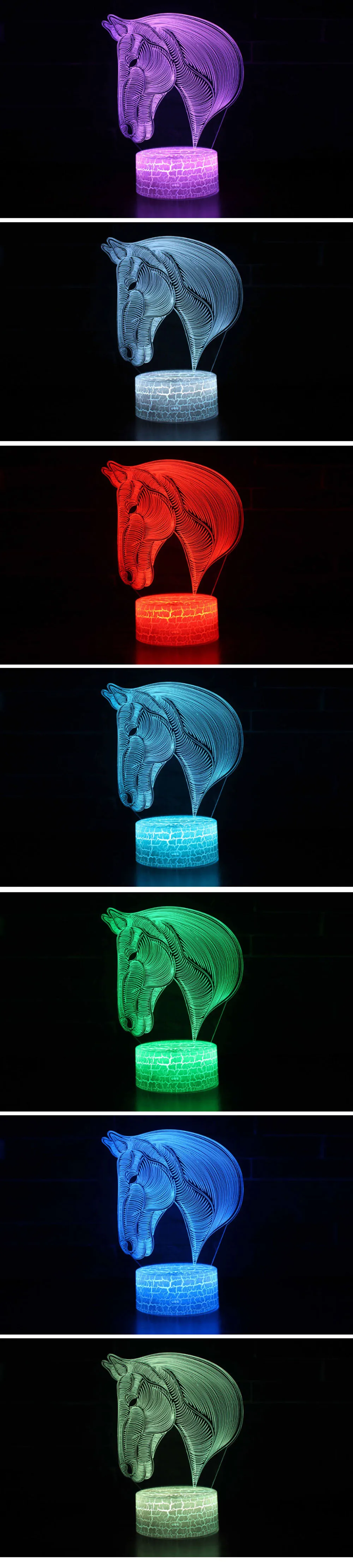 3d иллюзия лошадь лампа цвета переменчивый ночной Светильник для детей декор для спальни лампа-Ночник проектор детский день рождения рождественские подарки
