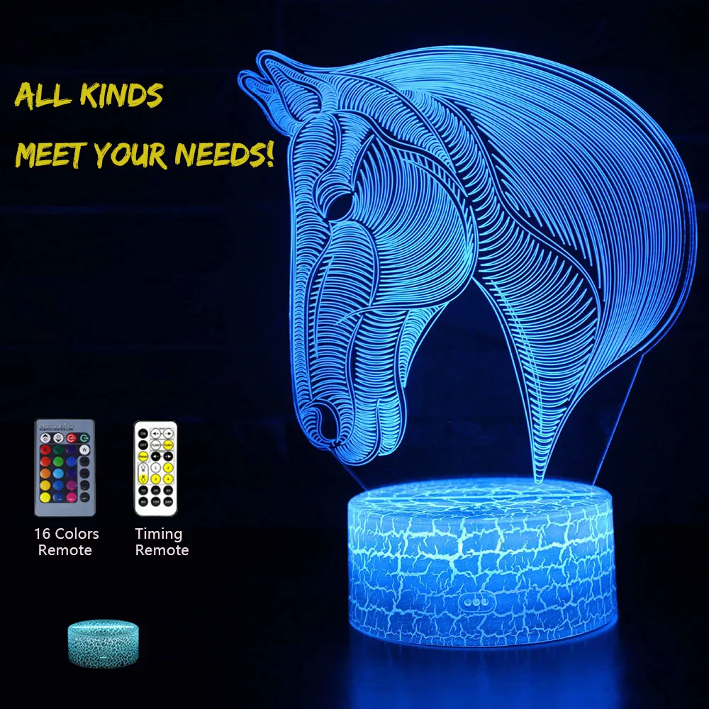3d иллюзия лошадь лампа Цвета Сменные ночной Светильник для детской спальни декора лампа-Ночник проектор для детей на день рождения подарки на Рождество