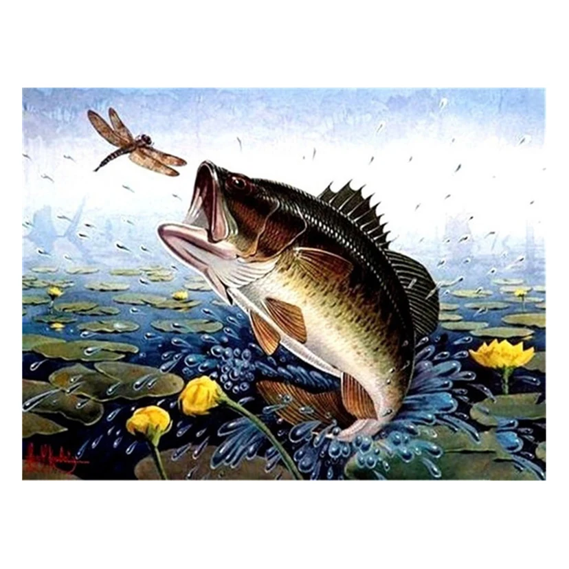 Алмазное покрытие полный дрель 5D DIY Вышивка крестиком Алмазная мозаика большая рыба Стрекоза Цветок украшение дома подарок L19