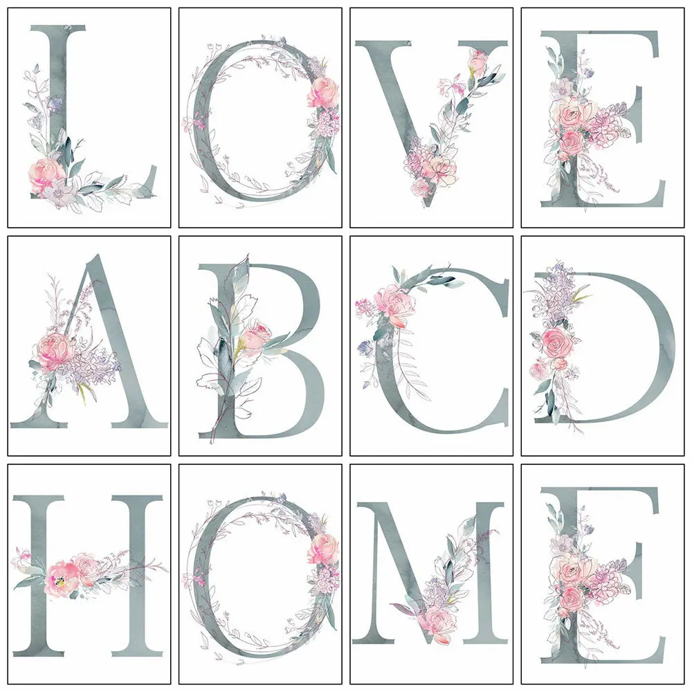 5D алмазная живопись сделай сам, буква, цветок, алмазная вышивка, полностью круглые наборы для вышивки крестиком, мозаика стразы, картина для домашнего декора