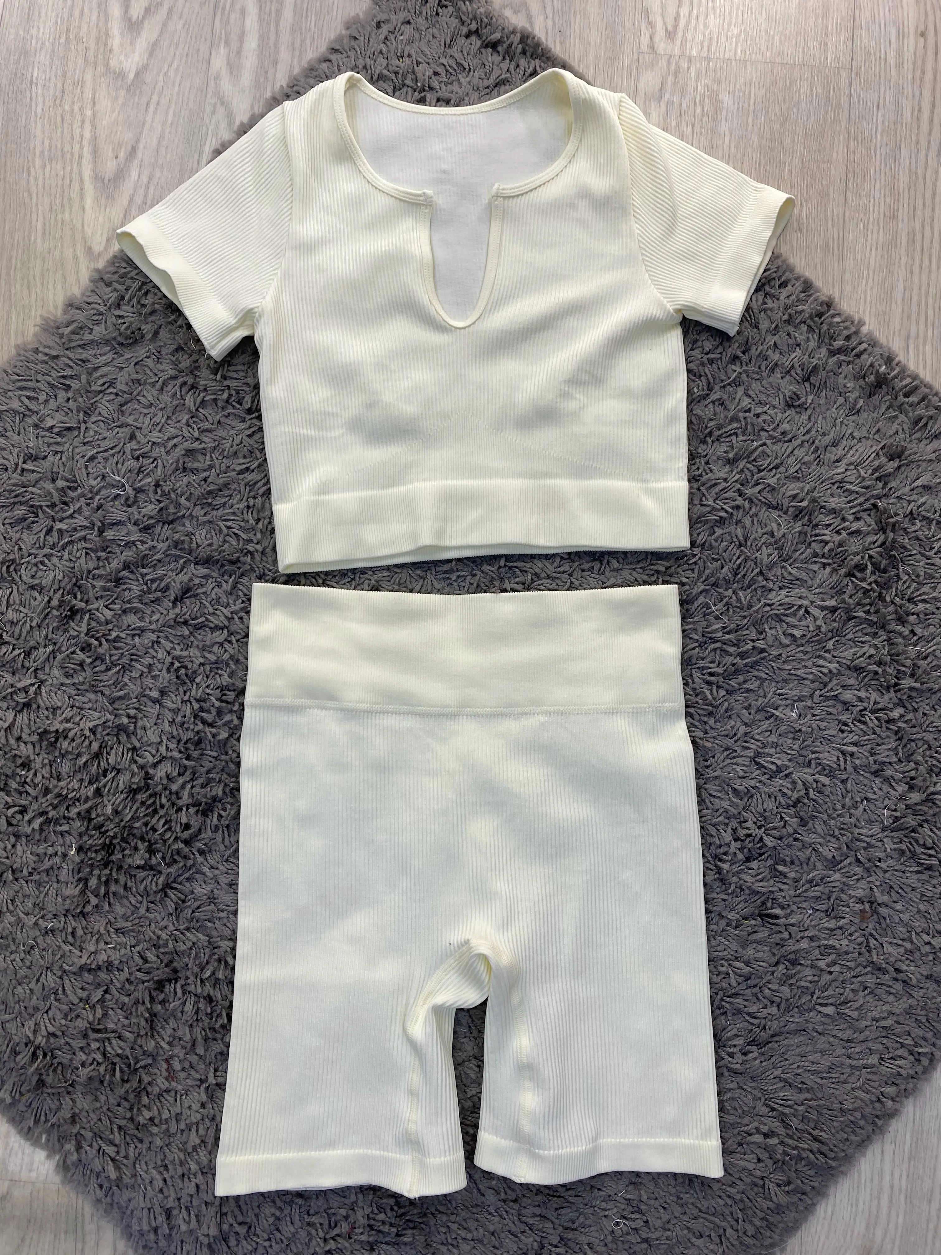 Идеальный спортивный костюм. Топ+велосипедки. Качество замечательное, выполнен аккуратно, строчки все ровные, нитки не торчали. Цвет молочный, очень красивый. Ссылка: https://s.click.aliexpress.com/e/_A0UuFb Материал плотный, эластичный и совершенно не просвечивается. Размер S идеально подошел. Мои параметры: 83-63-95 см, рост 164 см. Ссылка: https://s.click.aliexpress.com/e/_A0UuFb