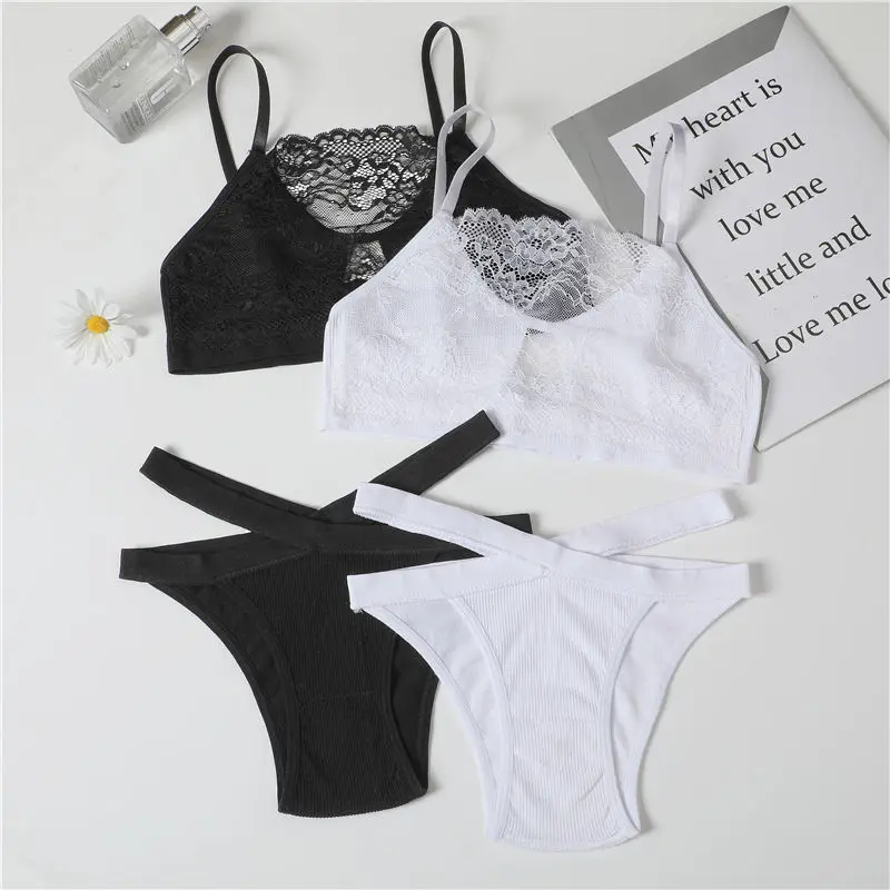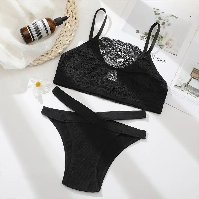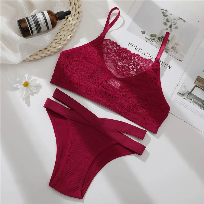 Сексуальный кружевной комплект с бюстгальтером для женщин, женское цветочное ажурное нижнее белье, модные трусики с перекрестными бретелями, комплект нижнего белья для девушек, женский бюстгальтер без косточек