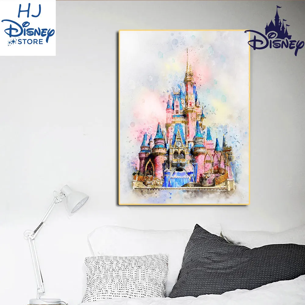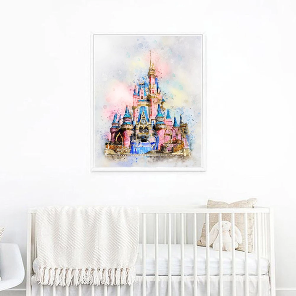 Картина на холсте с изображением комнаты, декор с изображением диснеевских земель, Спящей Красавицы, волшебного замка, акварель, с возможностью печати, картина с изображением замка принцессы