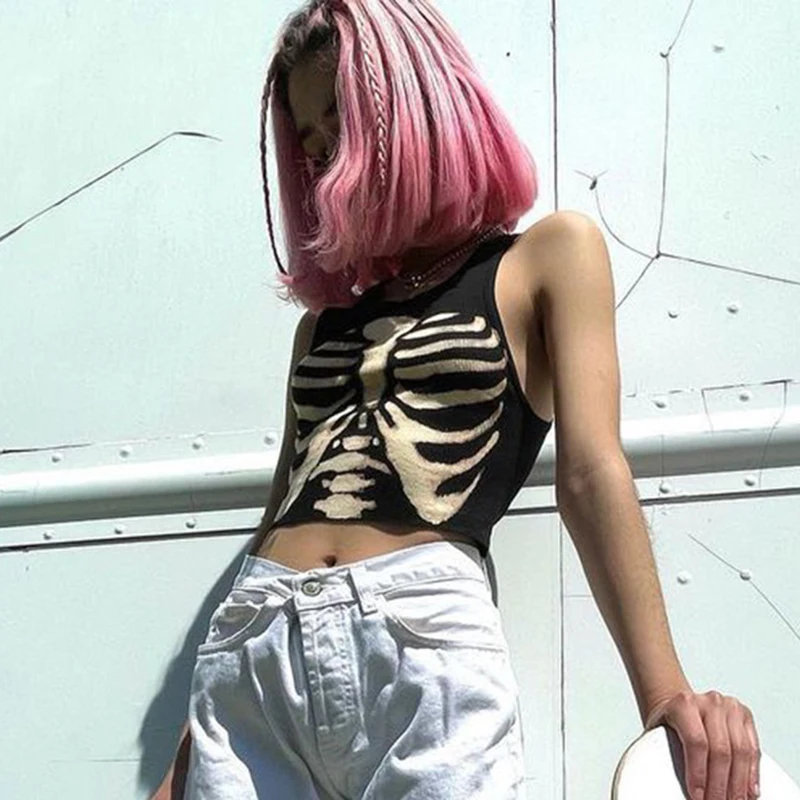 Женский короткий топ в стиле Харадзюку Goth Dark, готическая Черная Облегающая майка в стиле Харадзюку, летняя уличная одежда,