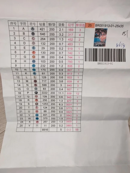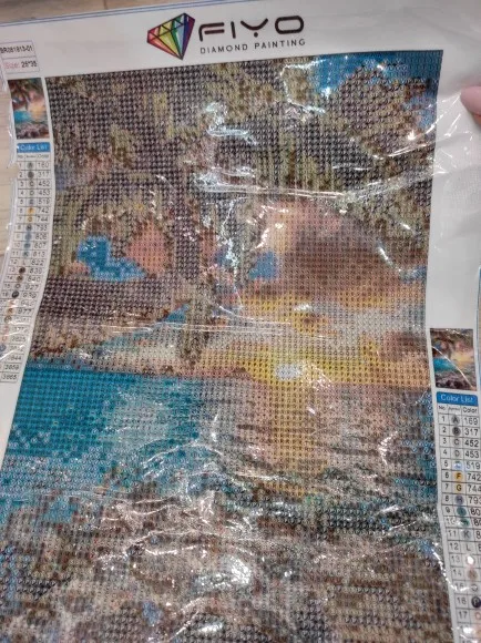 Доставили быстро в пакете с пупыркой. Заказывала размер 35 на 25 (это с белой рамкой-краем), Реальный размер картинки 30 на 20. Комплектация полная, есть лист-приложение с номерами цветов, так же это дублируется на картине. Цена очень даже приятная. Спасибо.